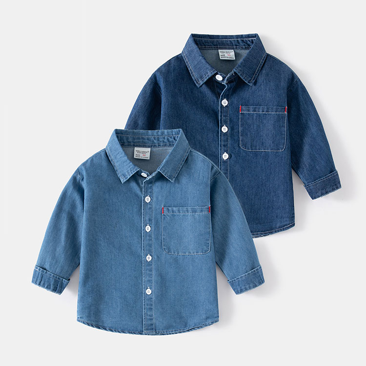 子供服 ボタンシャツ 男の子 デニムシ キッズ トップス シャツ ブラウス お買い得 ライトブルー ダークブルー 90cm 100cm 110cm 120cm 130cm