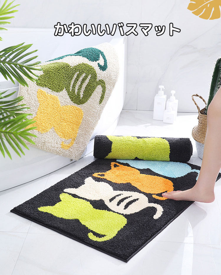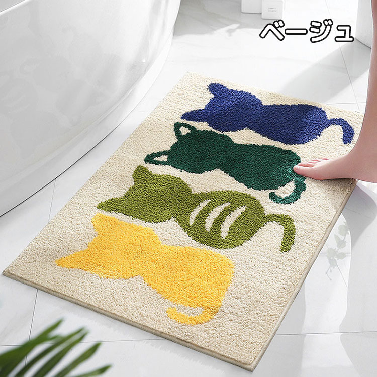 バスマット 吸水 速乾 かわいい ねこ 日用品雑貨 文房具 手芸 豊富な品揃え ベージュ ダークグレー 【S】40×60cm 【M】50×80cm 【L】60×90cm