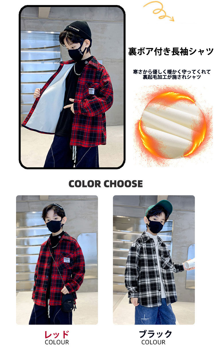 子供服 シャツ チェック柄 長袖 冬物 キッズ コート ジャケット 続々登場 レッド ブラック 120cm 130cm 140cm 150cm 160cm 170cm