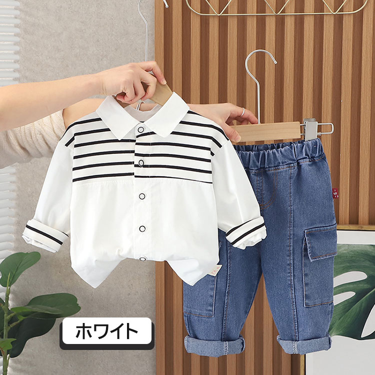 子供服 ベビー 男の子 2点セット セ キッズ スーツ カジュアルセットアップ カジュアルパンツセット 割引 ホワイト ブラック 80cm 90cm 100cm 110cm