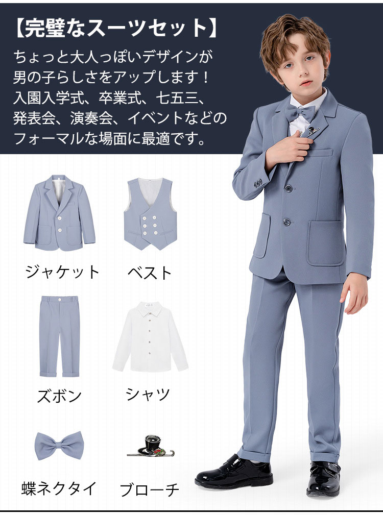 子供服 男の子 スーツ フォーマルスー キッズ ベビー マタニティ 豊富な品揃え ベージュ(5点セット) ブルー(5点セット) グレー(5点セット) ベージュ(6点セット) ブルー(6点セット) グレー(6点セット) 90cm 100cm 110cm 120cm 130cm 140cm 150cm 160cm 170cm