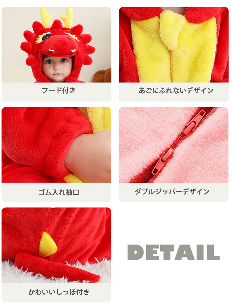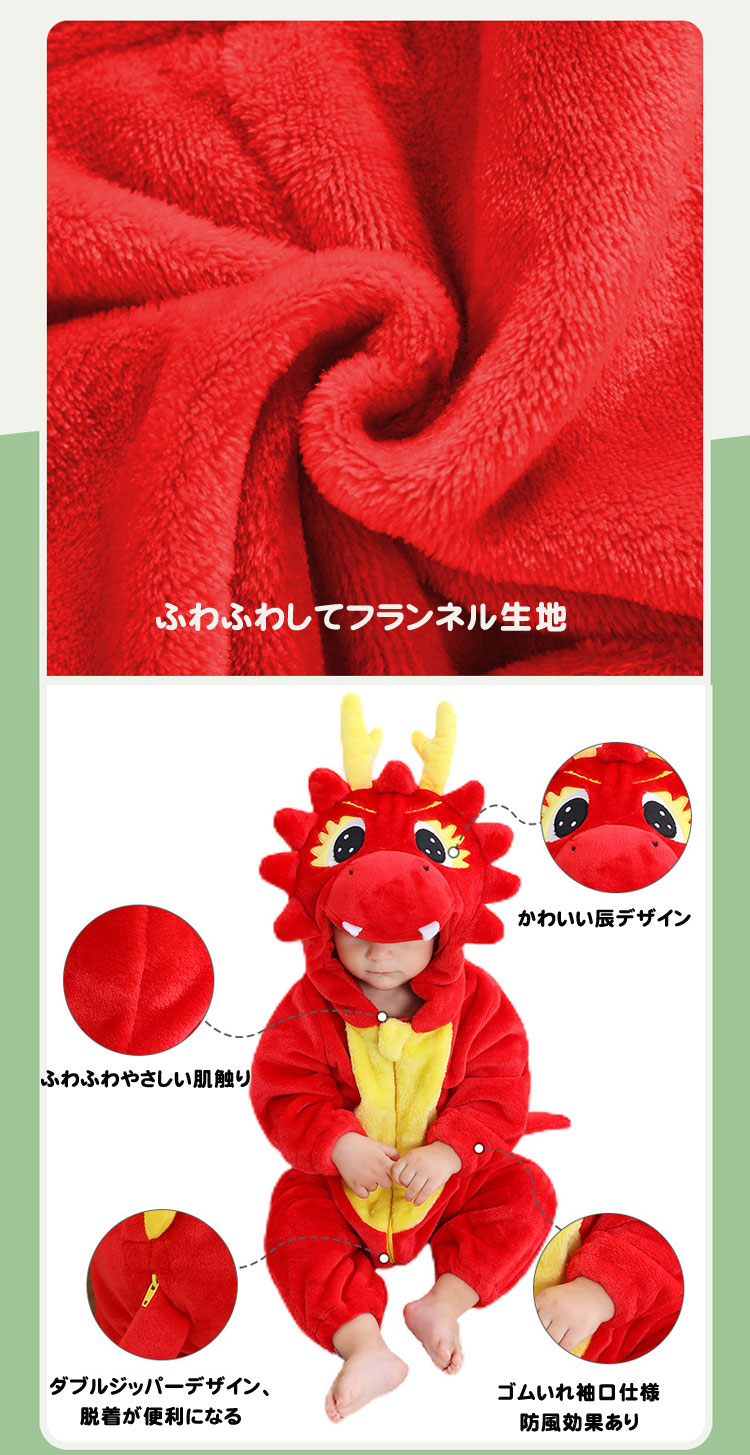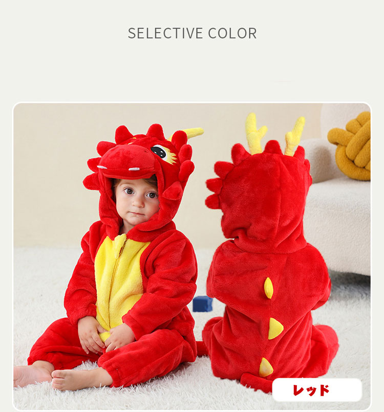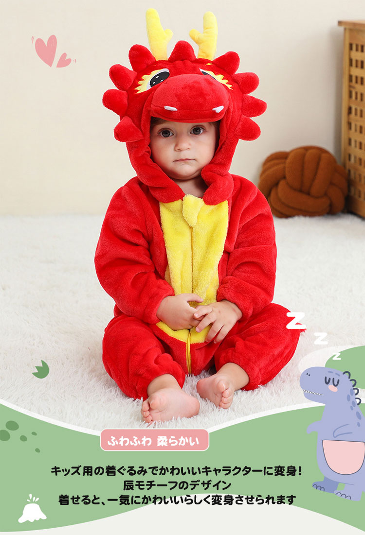 ベビー着ぐるみ 辰龍 干支年賀状 子供 ベビー ベビー服 ファッション カバーオール ロンパース 通販 レッド グリーン ブルー 70 80 90 100 110 120