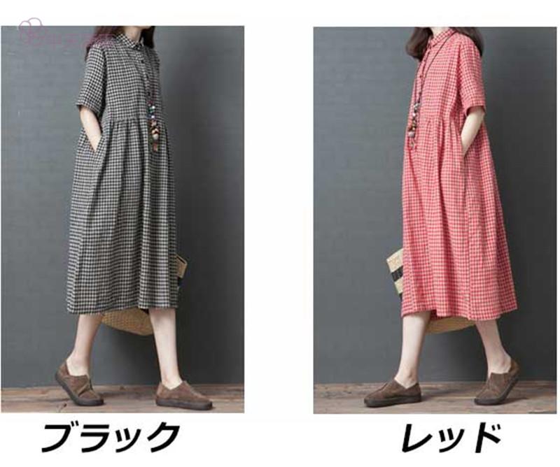 【chuten】ワンピース 綿麻 ワンピ 森ガールワンピース レディース チェック柄 マキシ丈 ゆったり 大きいサイズ 大人 ロング丈ワンピース 半袖 フレア フォーマル きれいめ 体型カバー ワンピ パーティー ドレス 通勤 レディース 森ガールワンピース 着痩せ バーオーバーサイズ マキシ丈ワンピース ワンピース ファッション おしゃれ【高品質】