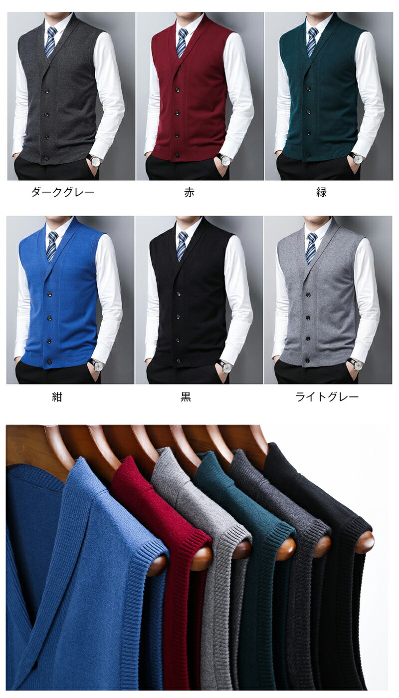 ニット ベスト メンズ 前開き 折り襟 トップス ベスト ジレ 豊富な品揃え ダークグレー 赤 緑 紺 黒 ライトグレー M L XL 2XL 3XL 4XL