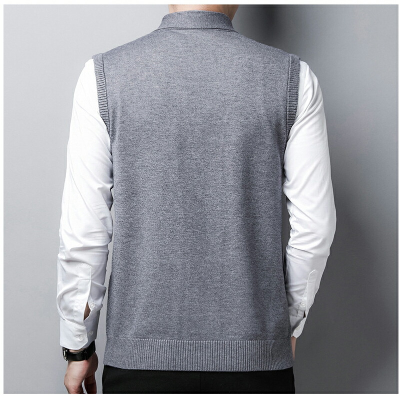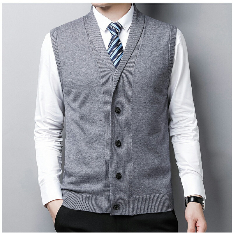 【最大2000円OFF】ニット ベスト メンズ 前開き 折り襟 スーツベスト 春 秋 冬 Vネック ジレ チョッキ メンズ ビジネスベスト ポケット シングルボタン お洒落 アウター 細身 メンズ ニットベスト フォーマル トップス おしゃれ 通学 通勤 仕事 ファッション グレー