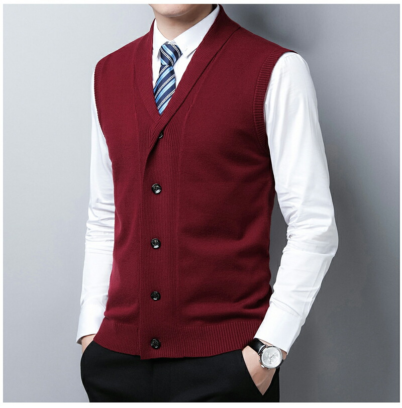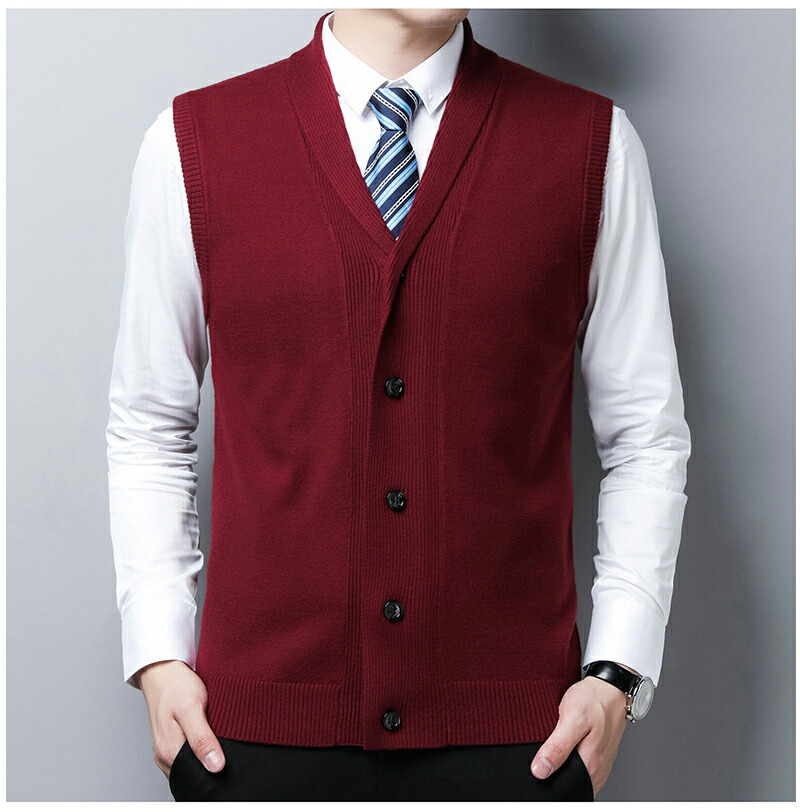 M-4XL メンズ ニットベスト スーツ フォーマル ダブルカラー 紳士ジレ 春秋 冬 洗える Vネック ビジネス カジュアル セーター 全6色 M/L/XL/2XL/3XL/4XL 紺 黒 ライトグレー 赤 緑