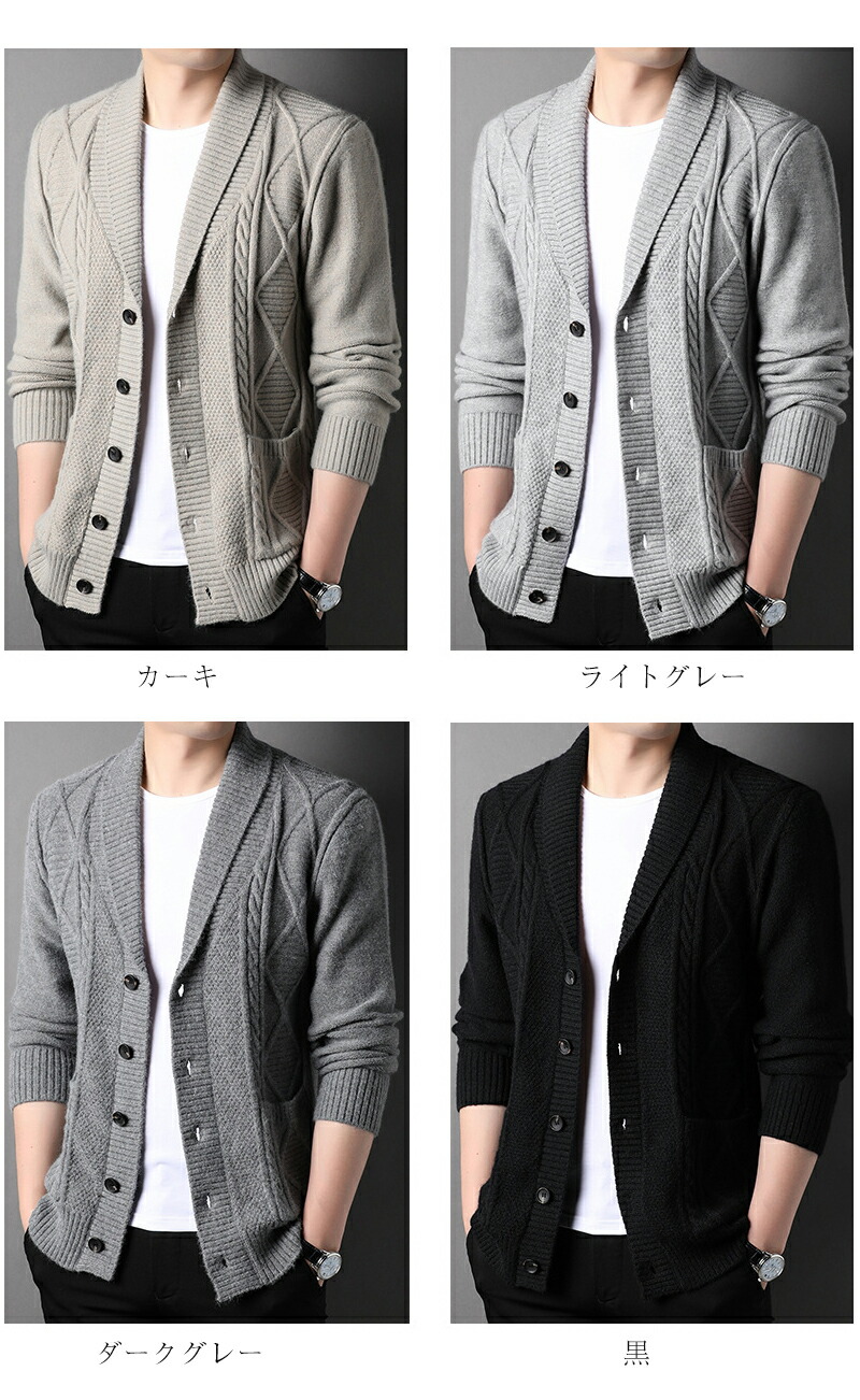 カーディガン メンズ ニットカーディガ メンズファッション お買い得 カーキ 黒 ライトグレー ダークグレー 165 170 175 180 185 190