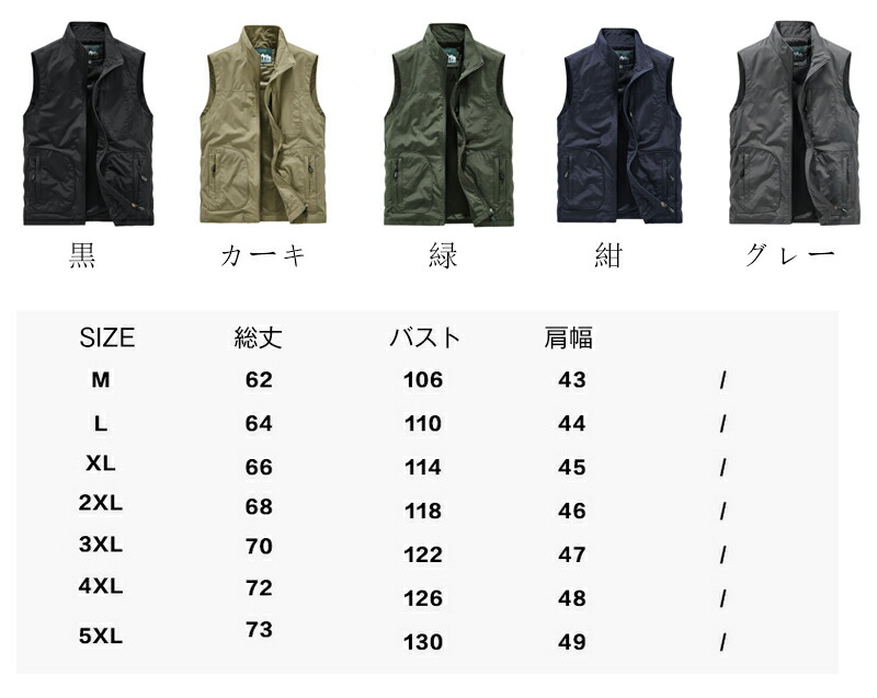ベスト メンズ 春夏 大きいサイズ ア トップス ベスト ジレ お得なセール 黒 カーキ 緑 紺色 グレー M L XL 2XL 3XL 4XL 5XL