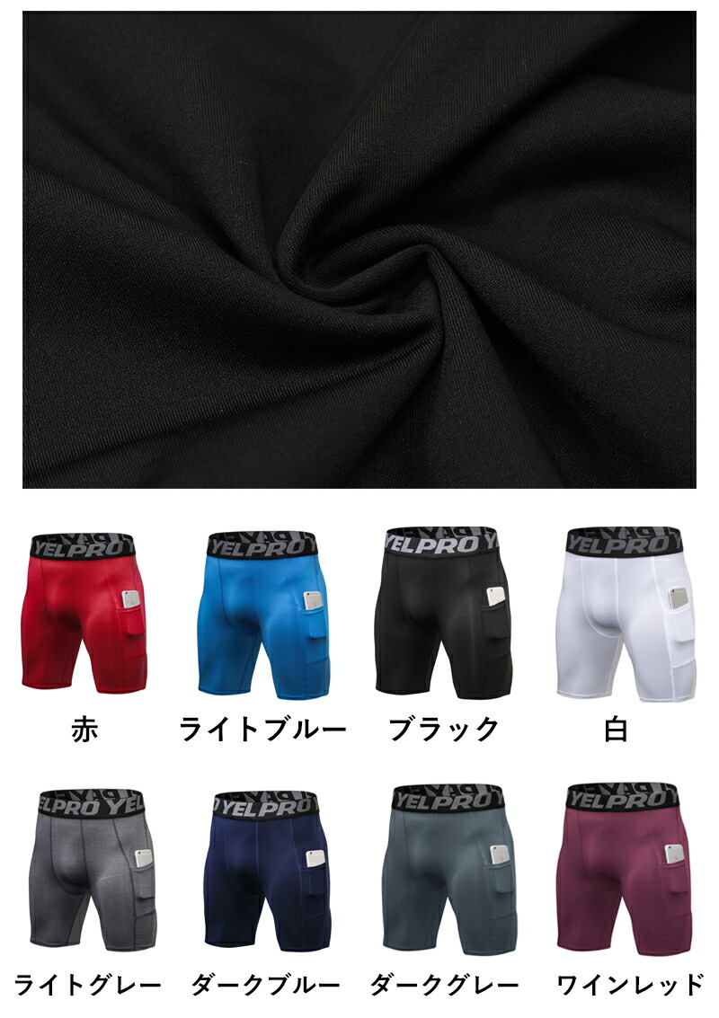 スパッツ メンズ ハーフ フィットネス ハーフスパッツ パンツ ポケット付き 大きいサイズ ショートパンツ スポーツインナー メンズ下着 運動 ランニング 吸汗速乾 通気性 快適