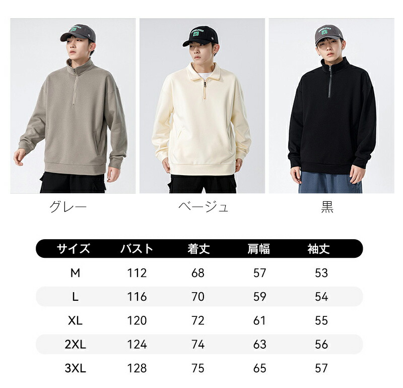 ポロシャツ 長袖 メンズ ハーフジップ メンズファッション 特集 M(体重範囲50-60kg) L(体重範囲60-67kg) XL(体重範囲67-75kg) 2XL(体重範囲75-82kg) 3XL(体重範囲82-90kg)