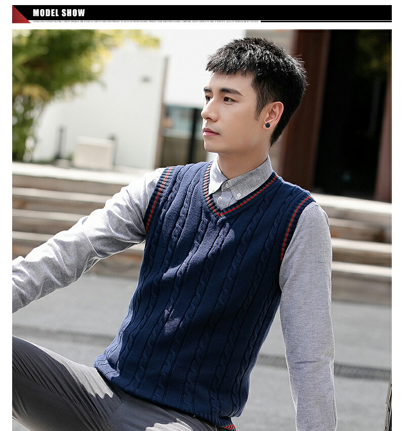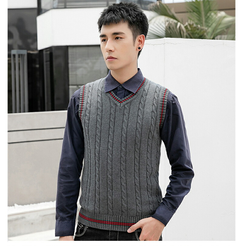 ニットベスト メンズ 裏起毛 Vネック トップス ベスト ジレ 豊富な品揃え 紺色 黒 ライトグレー ダークグレー ブラウン S M L XL 2XL 3XL