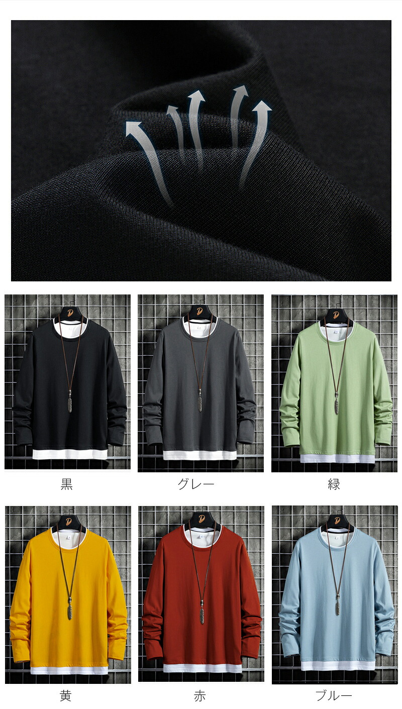 関連キーワード 長袖 tシャツ メンズ 綿100 春 秋 レイヤード風 カットソー プルオーバー スウェット フェイクレイヤード 大きいサイズ ロングtシャツ クルーネック ファッション 薄手 カジュアル トップス Tシャツ 重ね着風 通学 春物 秋物 オシャレ 男性 彼氏 長袖シャツ