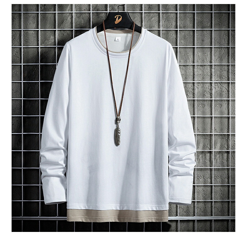 【最大2000円OFF】長袖 tシャツ メンズ 綿100 春 秋 レイヤード風 カットソー プルオーバー スウェット フェイクレイヤード 大きいサイズ ロングtシャツ クルーネック 薄手 カジュアル トップス Tシャツ 重ね着風 通学 春物 秋物 オシャレ 男性 彼氏 長袖シャツ