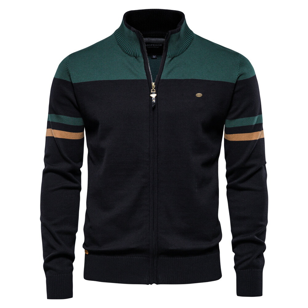 カーディガン ジップアップ セーター メンズ ジャケット 春秋 アウター 綿 カジュアル 長袖 ニットアウター 長袖ニット スタンドカラー トップス かっこいい 通学 通勤 ゴルフウエア アウトドア
