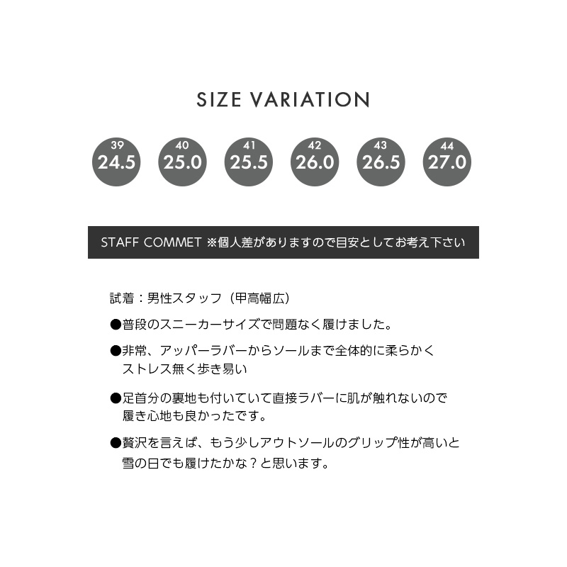 サイズ: 39(24.5cm~25cm) 42(26cm~26.5cm) 43(26.5cm~27cm)
