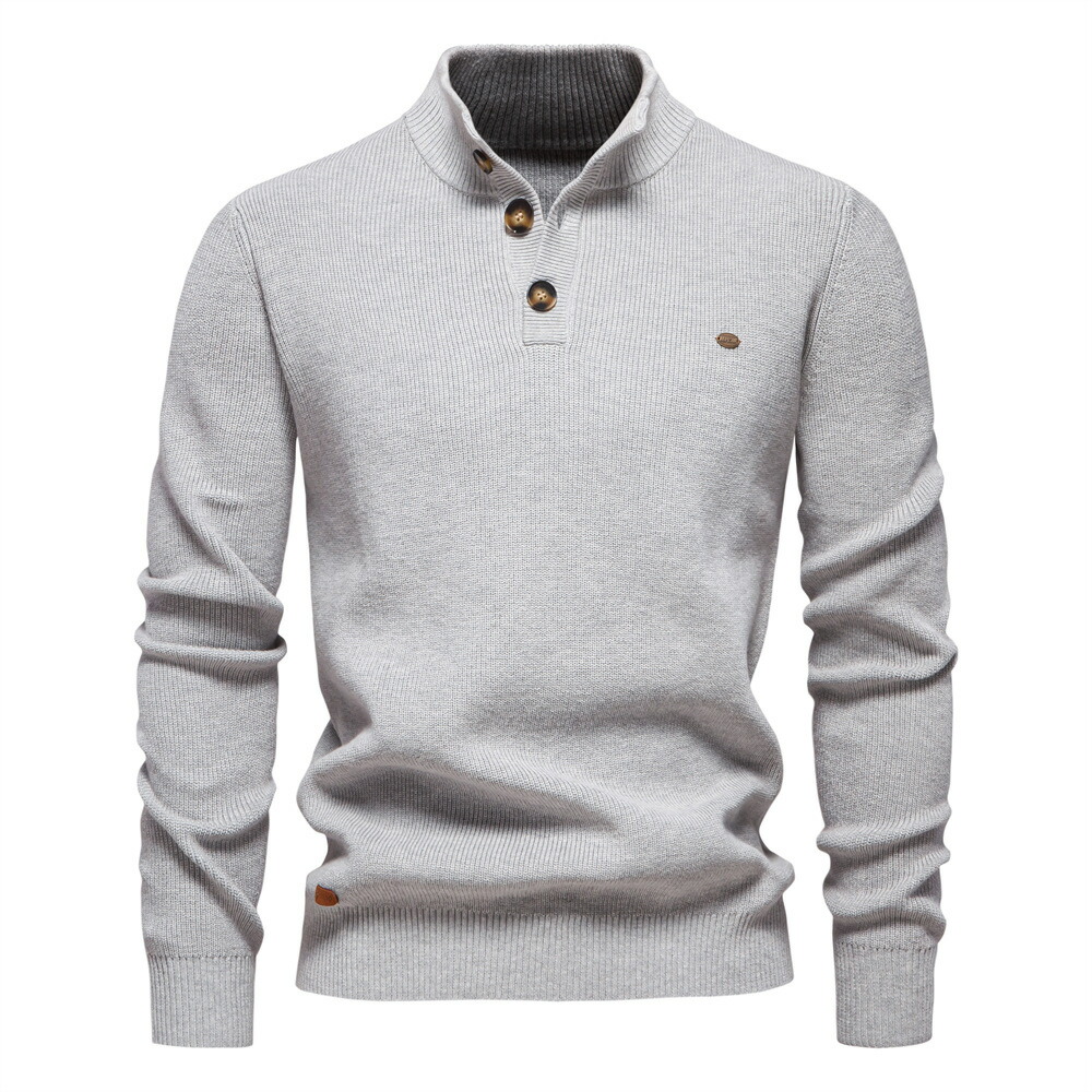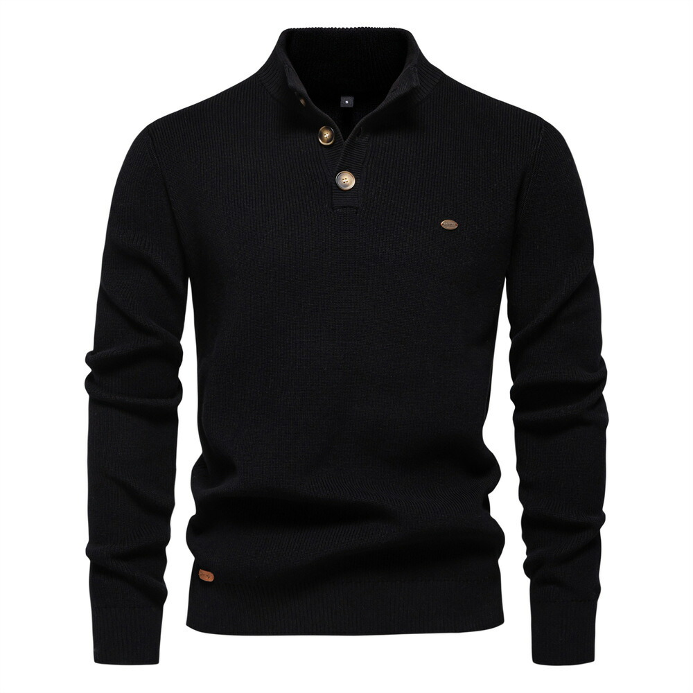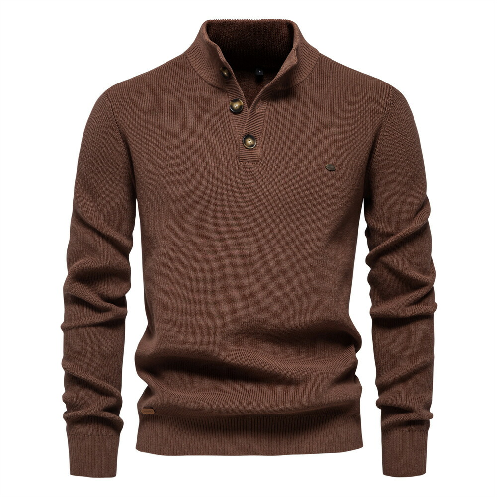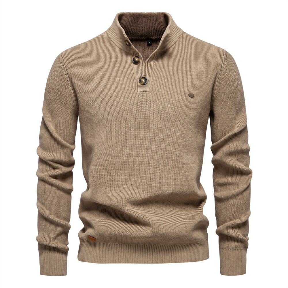 セーター メンズ 立ち襟 コットン 冬 ヘンリーネック ボタン あったか 長袖ニット ビジネス シンプル 通勤 オフィス トップス メンズセーター おしゃれ ゴルフウェア リラックス ナチュラル 紳士