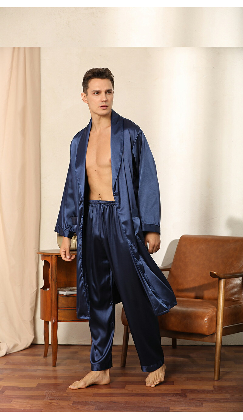 バスローブ メンズ 夏 薄手 上下セット ルームウエア ナイトガウン 部屋着 パジャマ 膝丈 通気性 無地 紳士 スリップ パジャマセット 男性 温泉 ホテル 軽量 風呂上がり サ