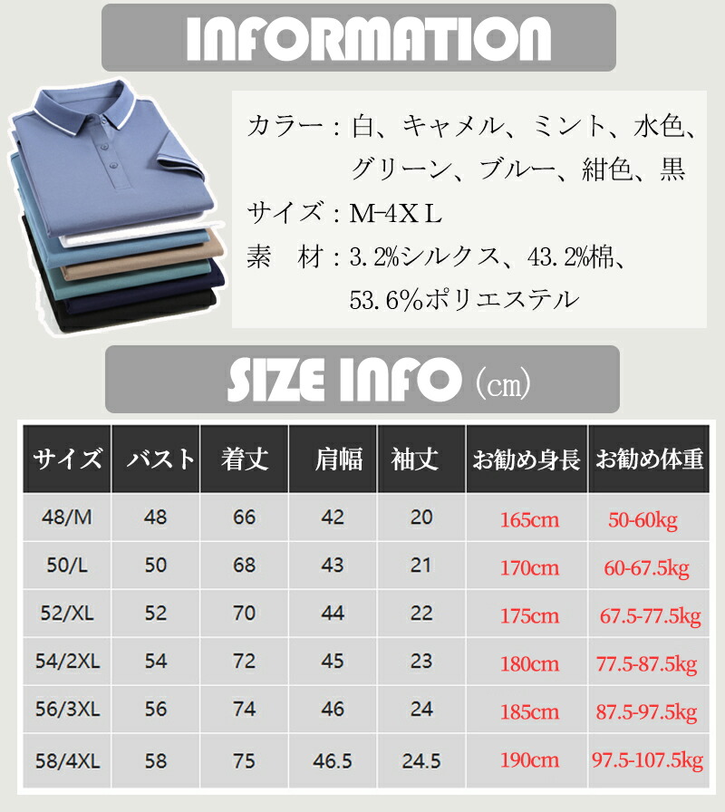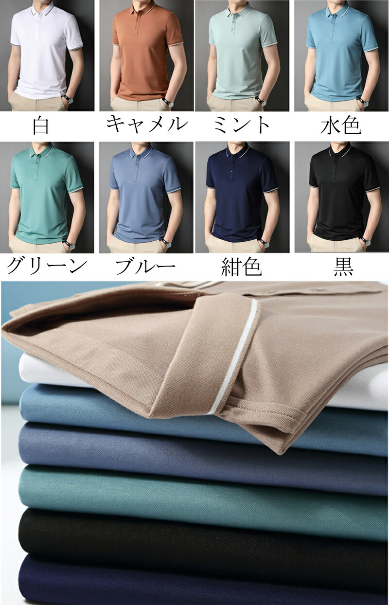 【送料無料】シルク ポロシャツ メンズ 半袖 ボタン 折り襟 トップス 無地 スタイリッシュ スポーツ 通勤 快適 吸汗速乾 マルチカラー 全8色 M~4XL