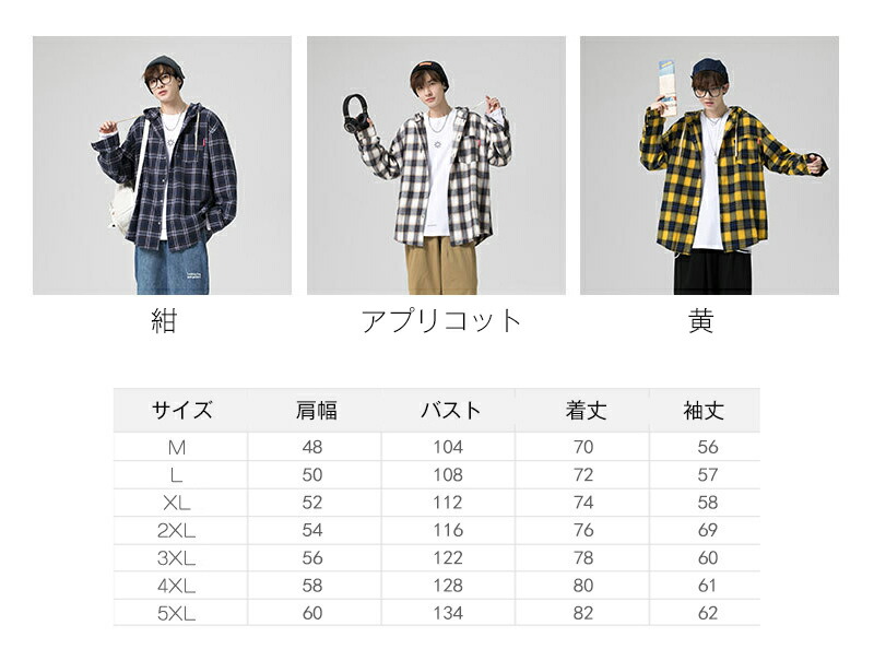 紺色 アプリコット 黄 大きいサイズ 長袖シャツ カジュアル チェック柄 おしゃれ かっこいい シャツジャケット アウター カジュアルシャツ イエロー ネイビー M L XL 2XL 3XL