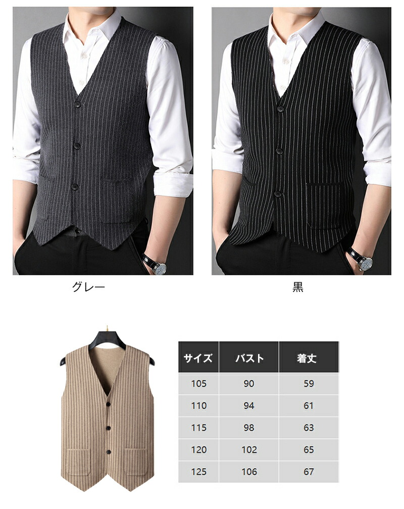 ニットベスト メンズ 秋 冬 ストライ トップス ベスト ジレ 豊富 コーヒー グレー 黒 M(身長160~172cm 体重50~60kg) L(身長170~177cm 体重60~70kg) Xl(身長175~180cm 体重65~75kg) 2XL(身長175~180cm 体重75~80kg) 3XL(身長180~190cm体重80~100kg)