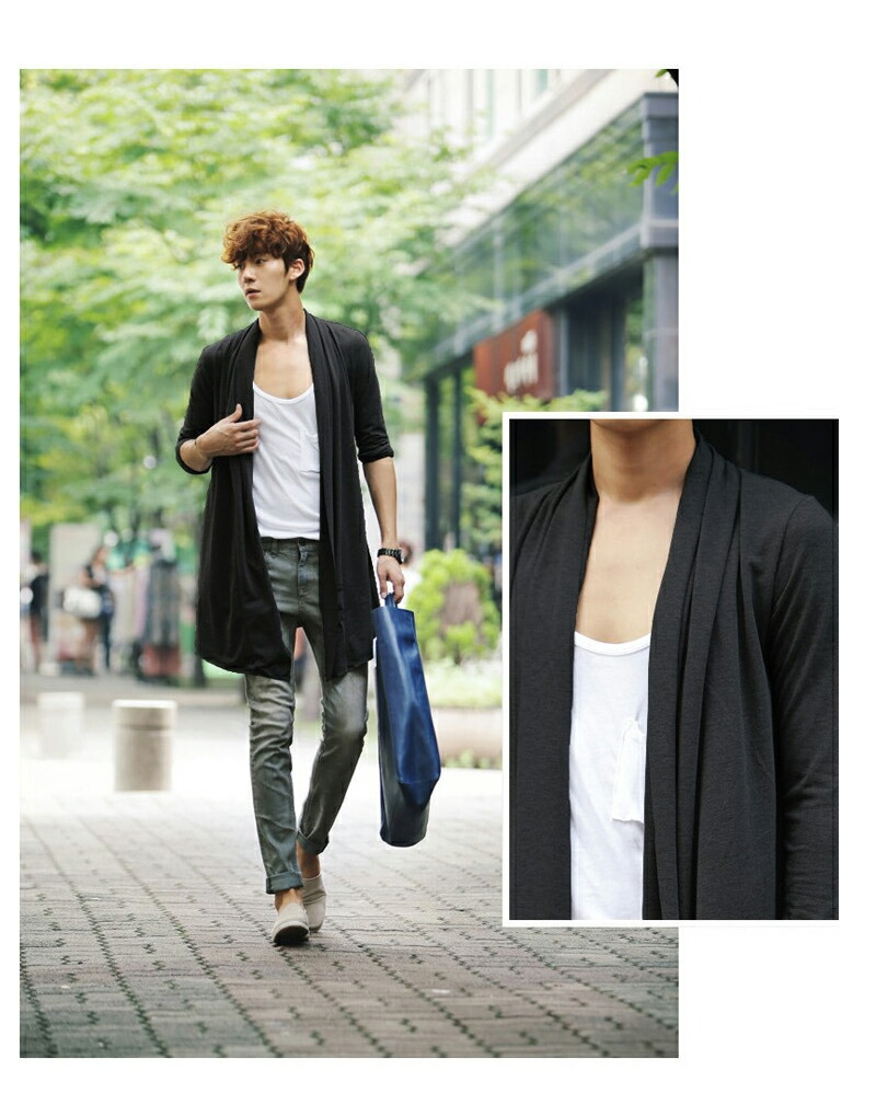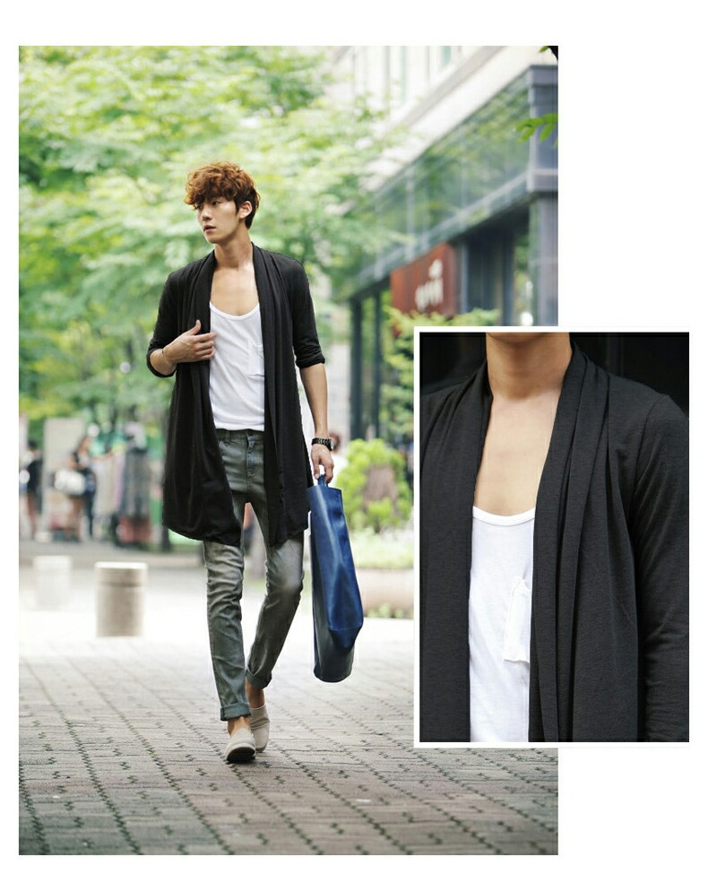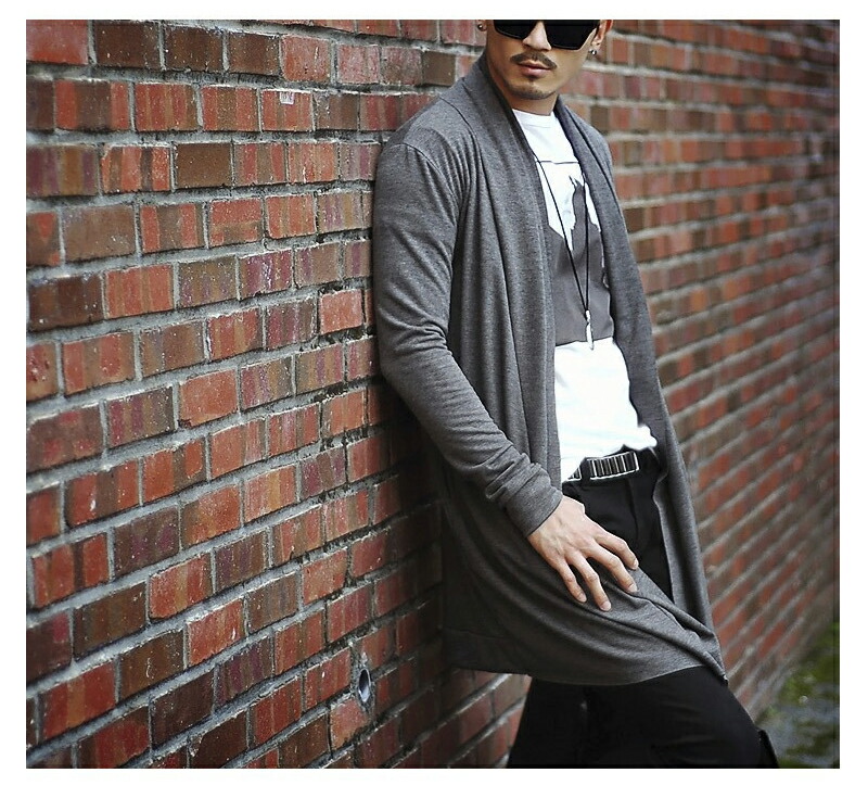 カーディガン メンズ トップス アウター ライトアウター サマーニット ロング丈 長袖 ショールカラー ドレープ ビッグシルエット モード系 春服 春 秋服 秋 ゆったり 美容