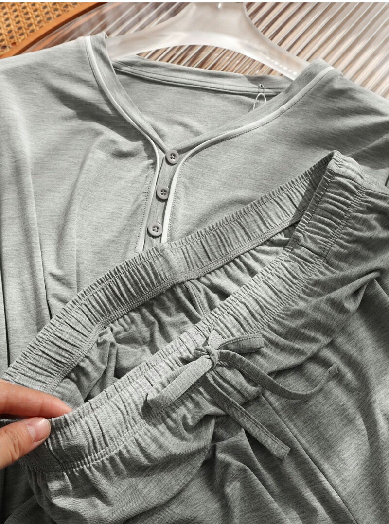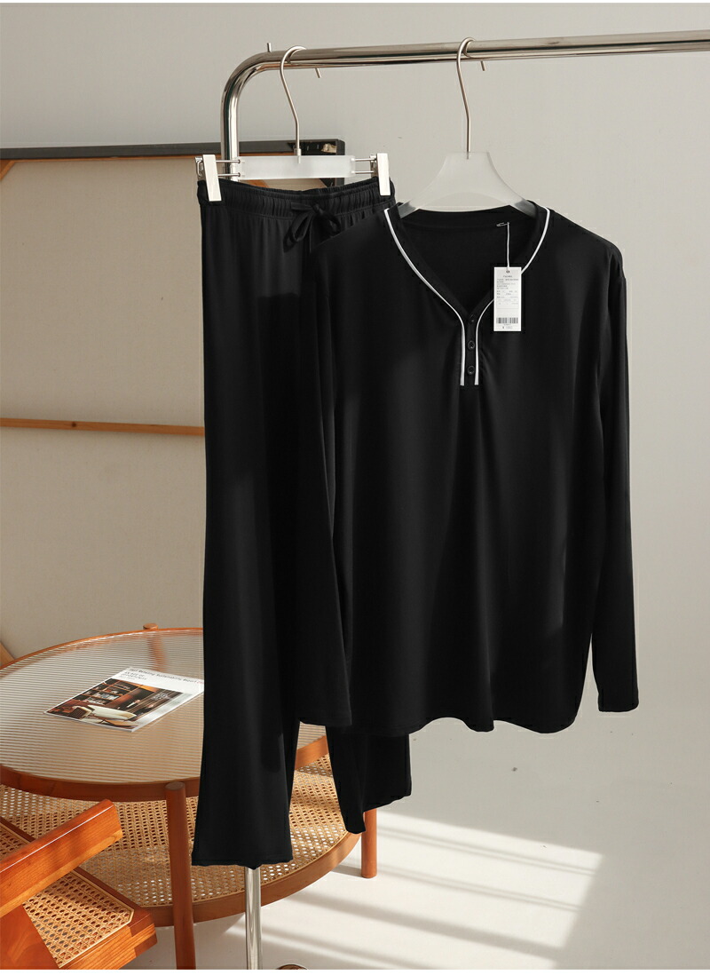 【送料無料】パジャマ 長ズボン 部屋着 ゆったり 吸湿性 セットアップ 夏服 寝巻 入院着 ナイトウェア 旅行 着替え 大人用 グレー ネイビー ブラック