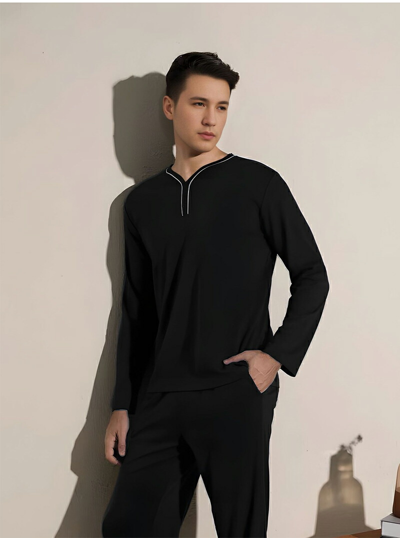 ルームウェア メンズ 上下 夏 長袖T インナー 下着 ナイトウエア 豊富な品揃え 黒 グレー 紺 175 180 185
