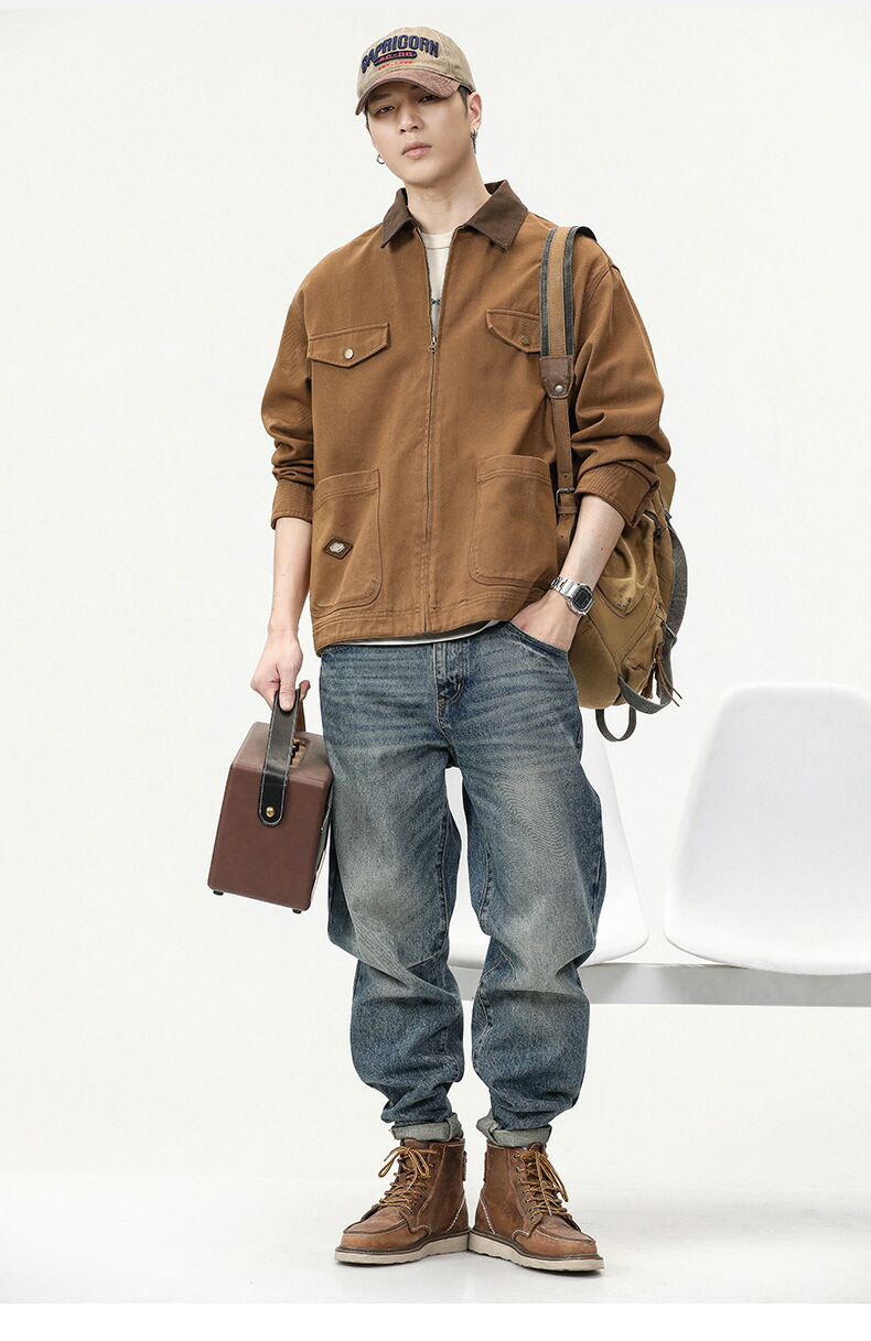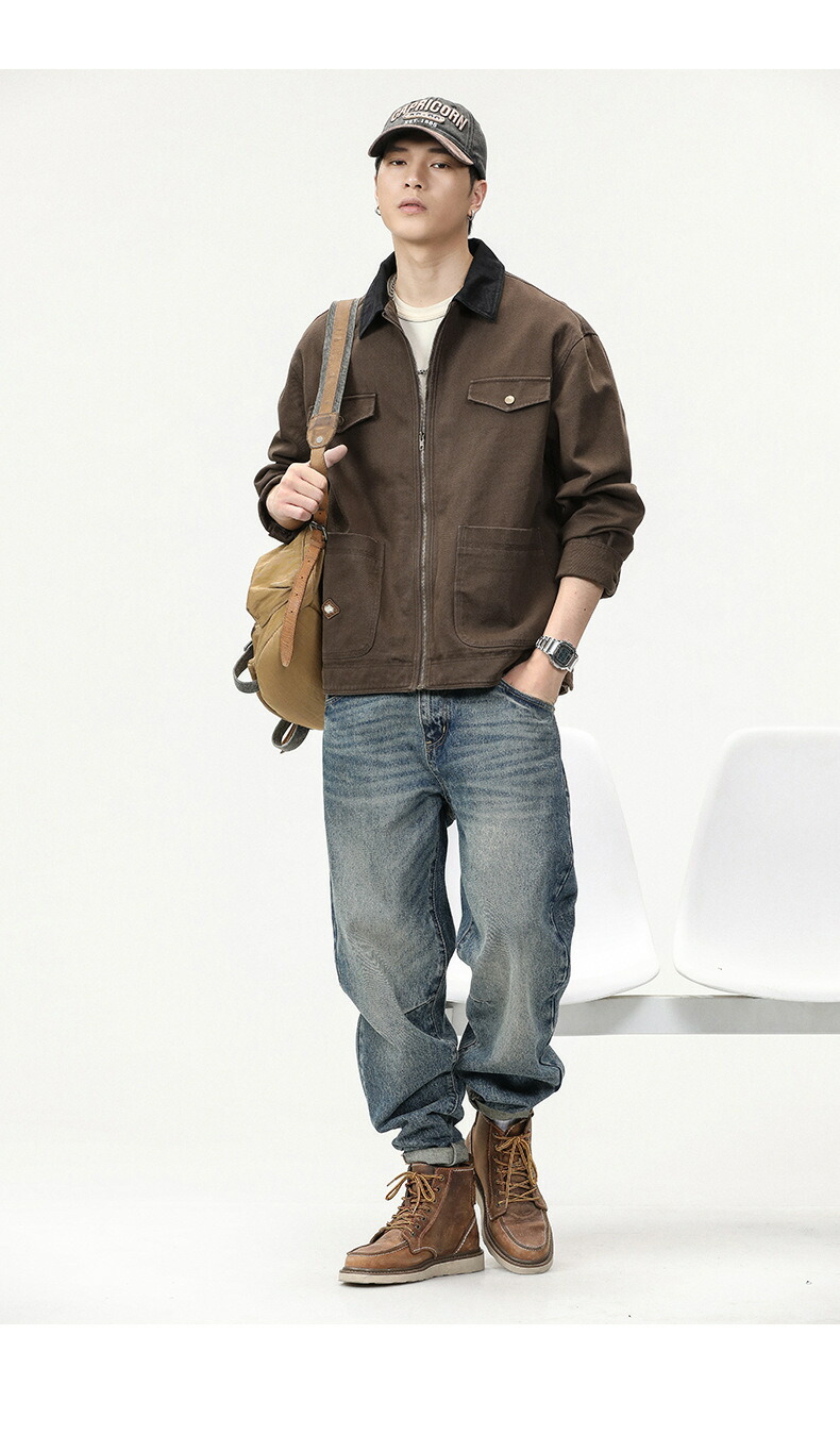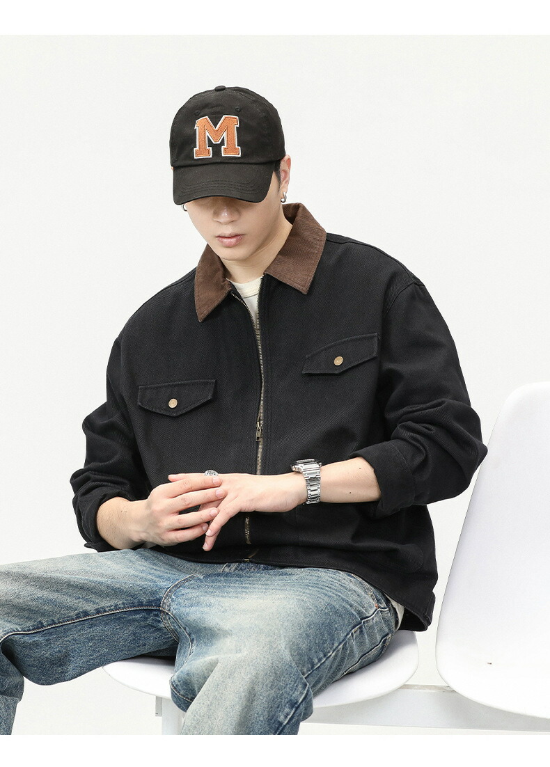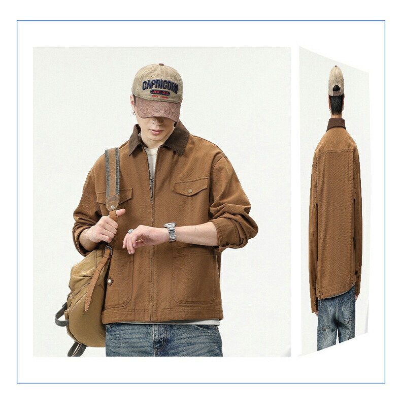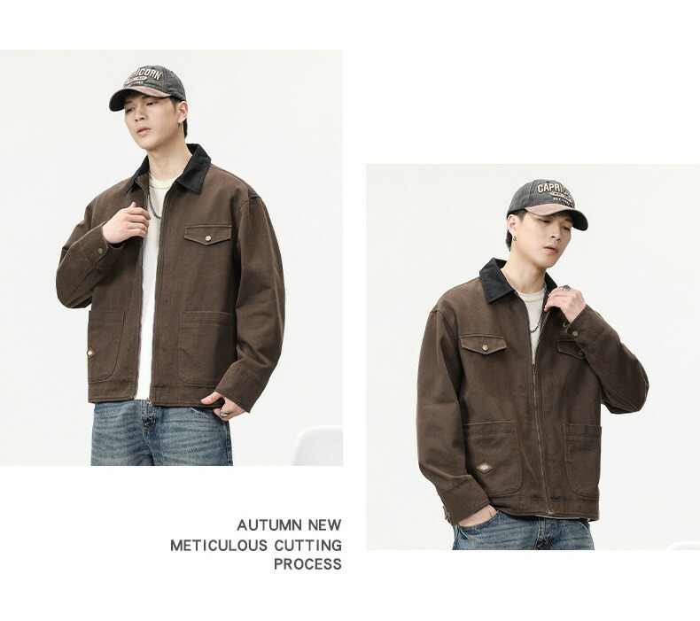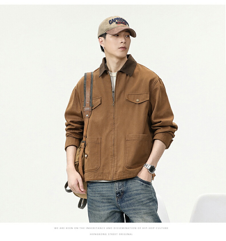【送料無料】メンズジャケット 折り襟 ゆったり カッコイイ リラックスコート 男性 コーチジャケット オシャレ 防風 カーキ コーヒー ブラック S M L XL 2XL 3XL 4XL