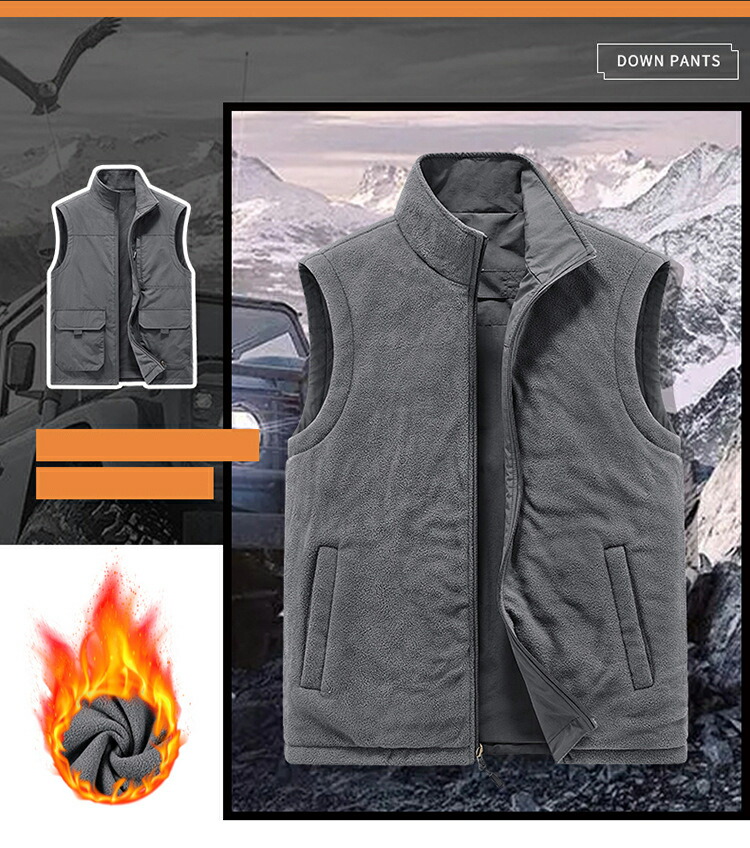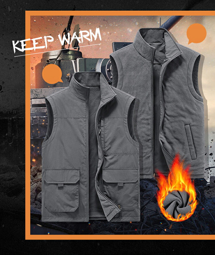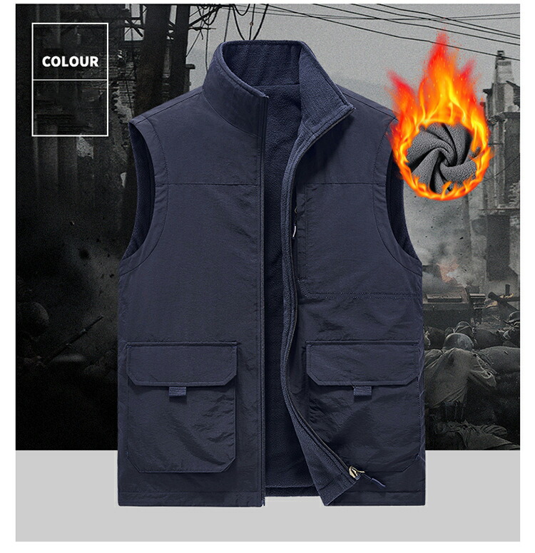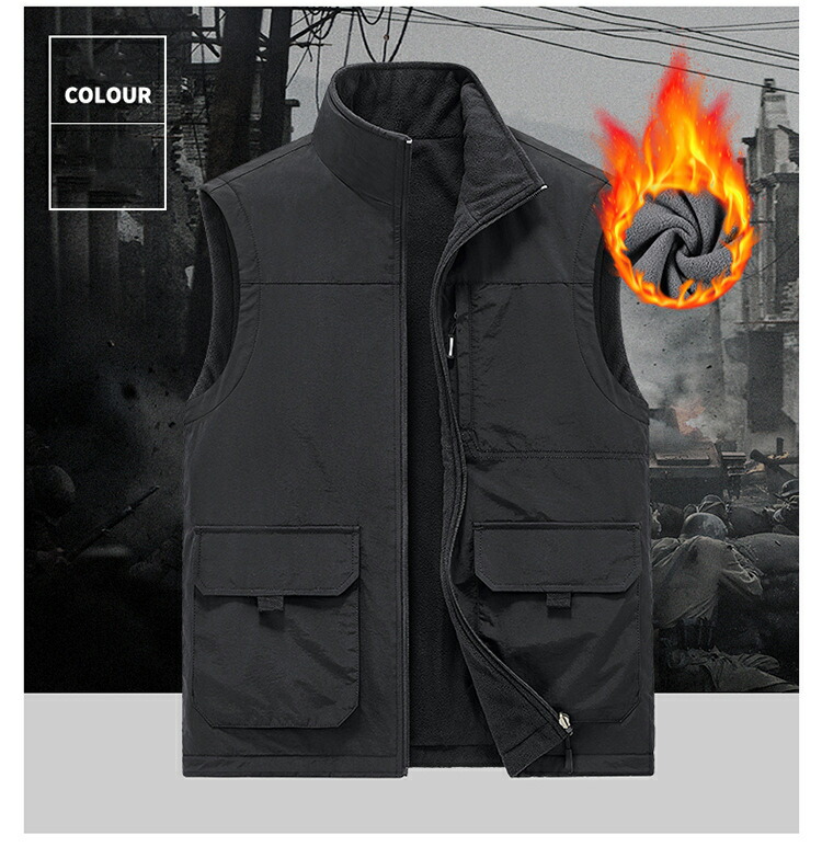 【最大2000円OFF】アウトドア 裏ボア ベスト メンズ 暖かい 秋冬 メンズベスト 両面着用 大きいサイズ ノースリーブ ボアベスト 多機能 ジップベスト ゆったり ミリタリー 作業着 前開き ハイネック ジャケット 紳士 防風 ウオーキング トップス メンズファッション