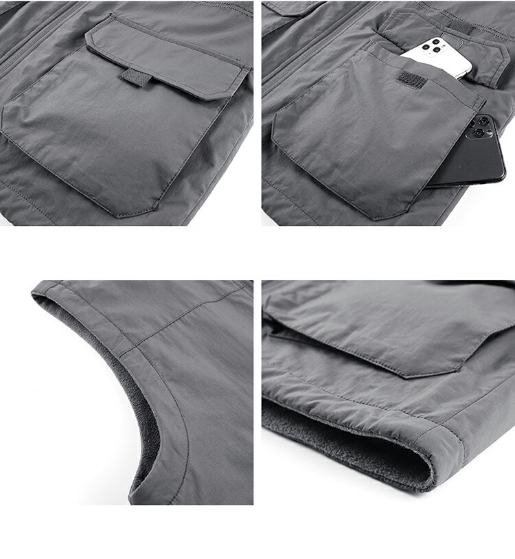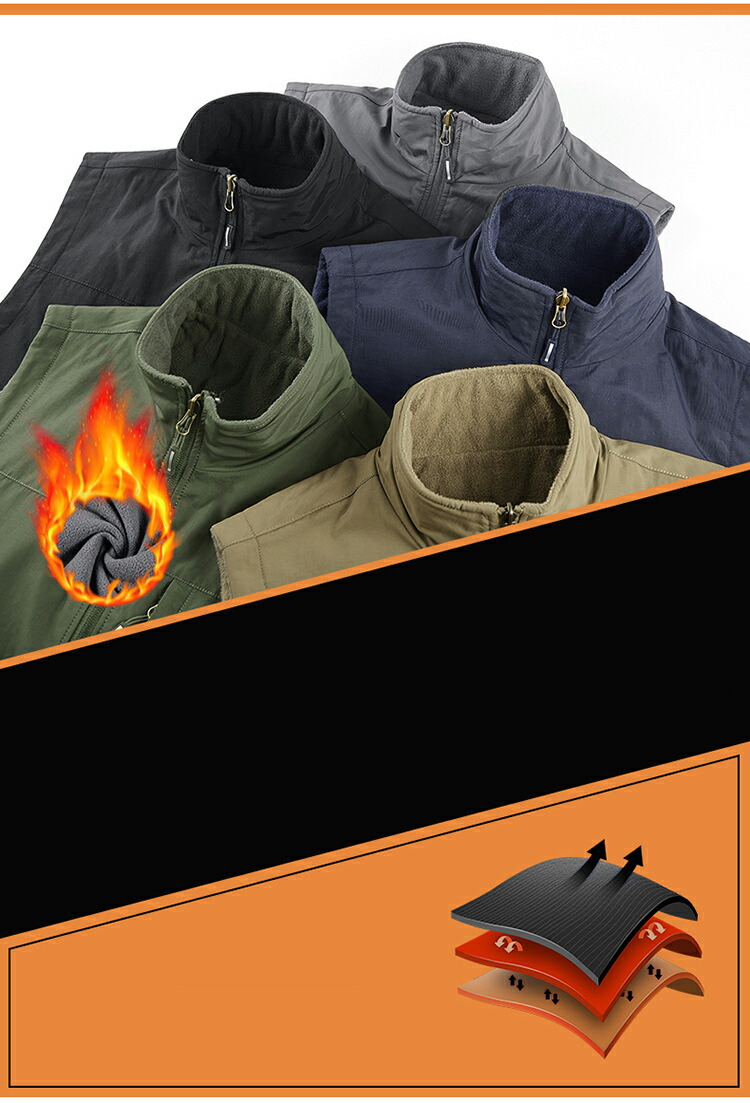【送料無料】防寒ベスト フリース あったか カジュアル アウター 裏フリース 登山 多機能ベスト 防寒着 キャンプ カーキ グレー ネイビー ブラック グリーン M~6XL