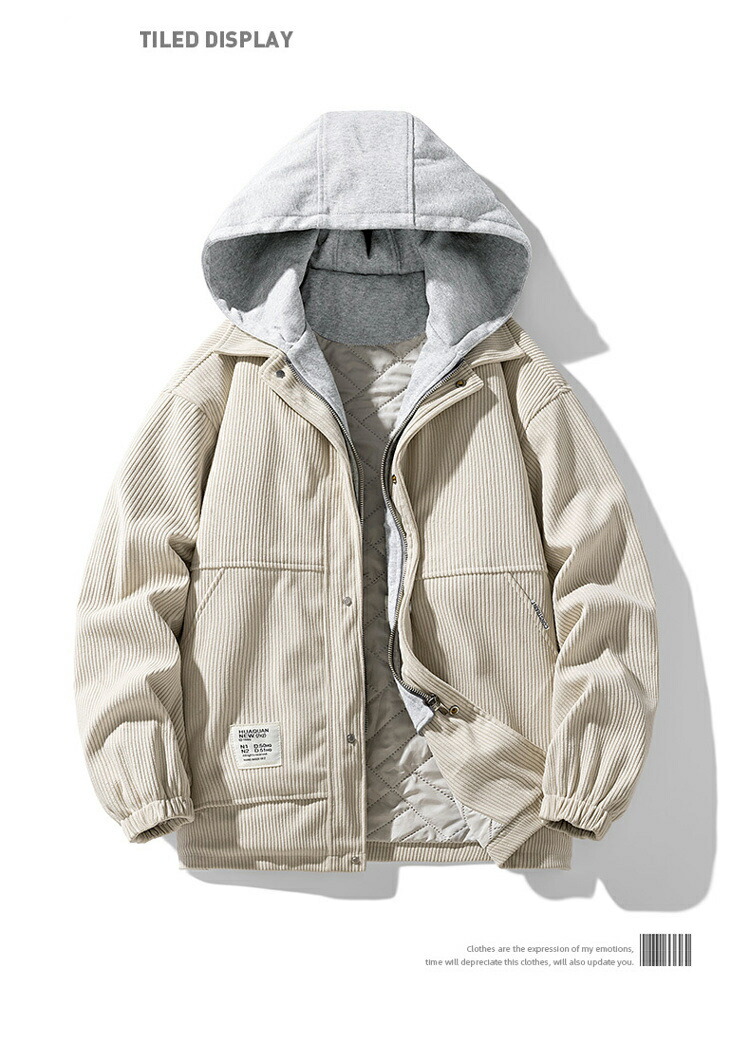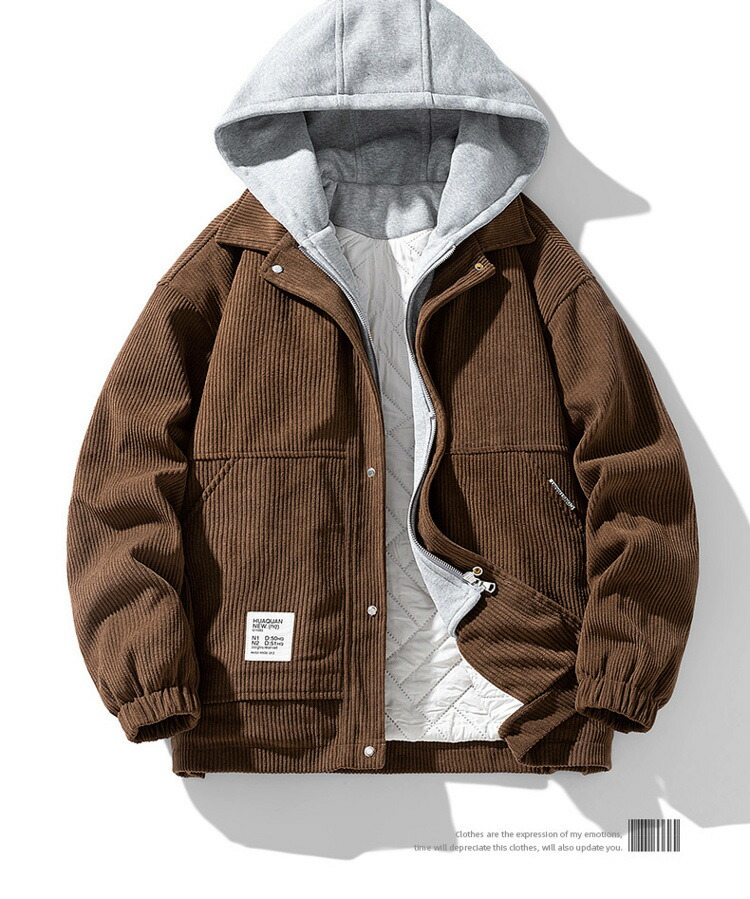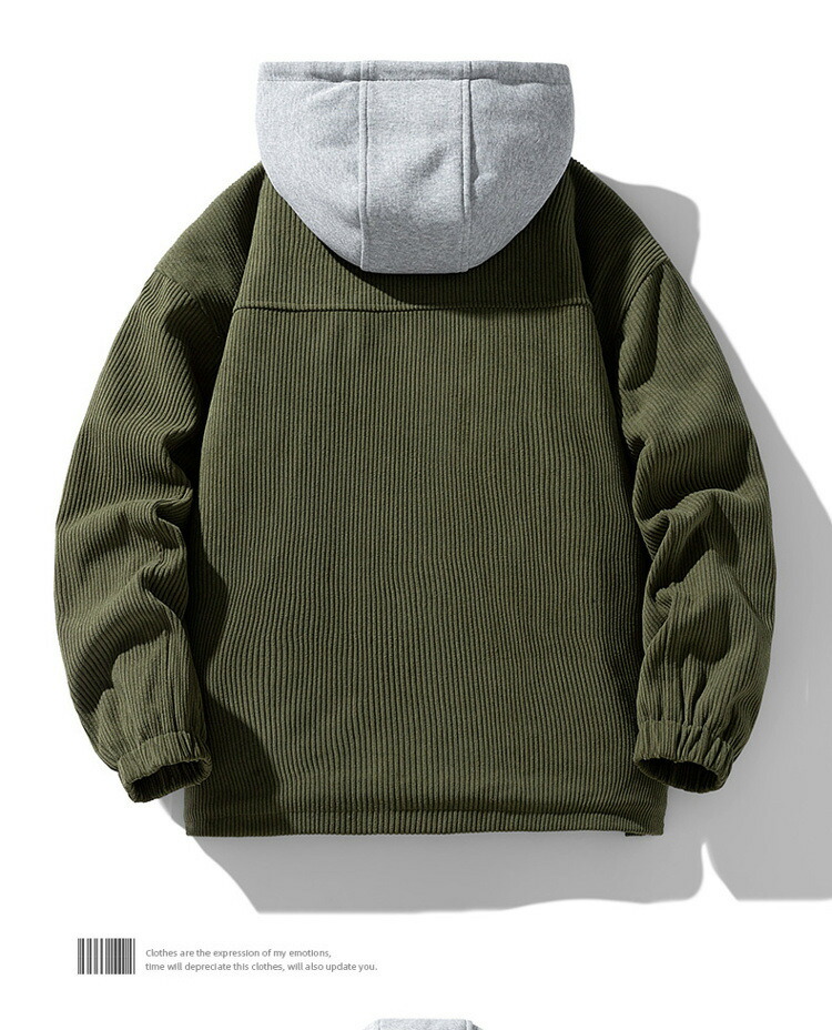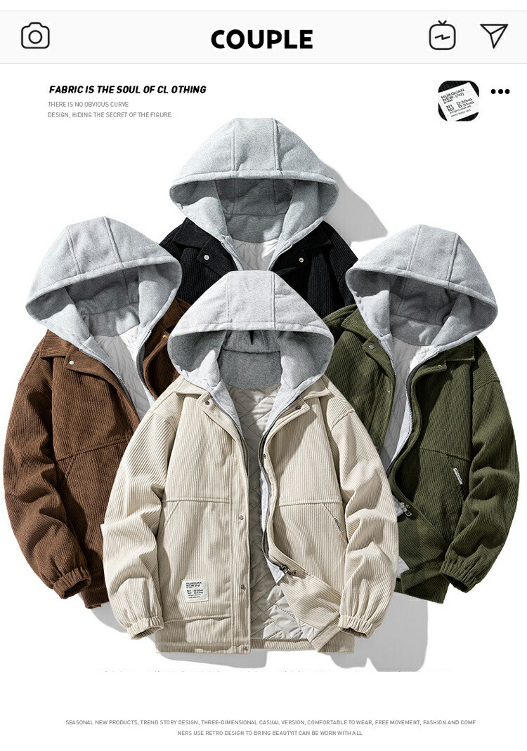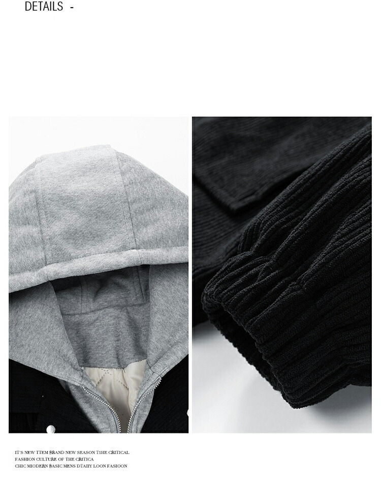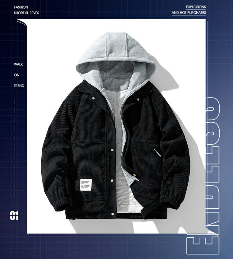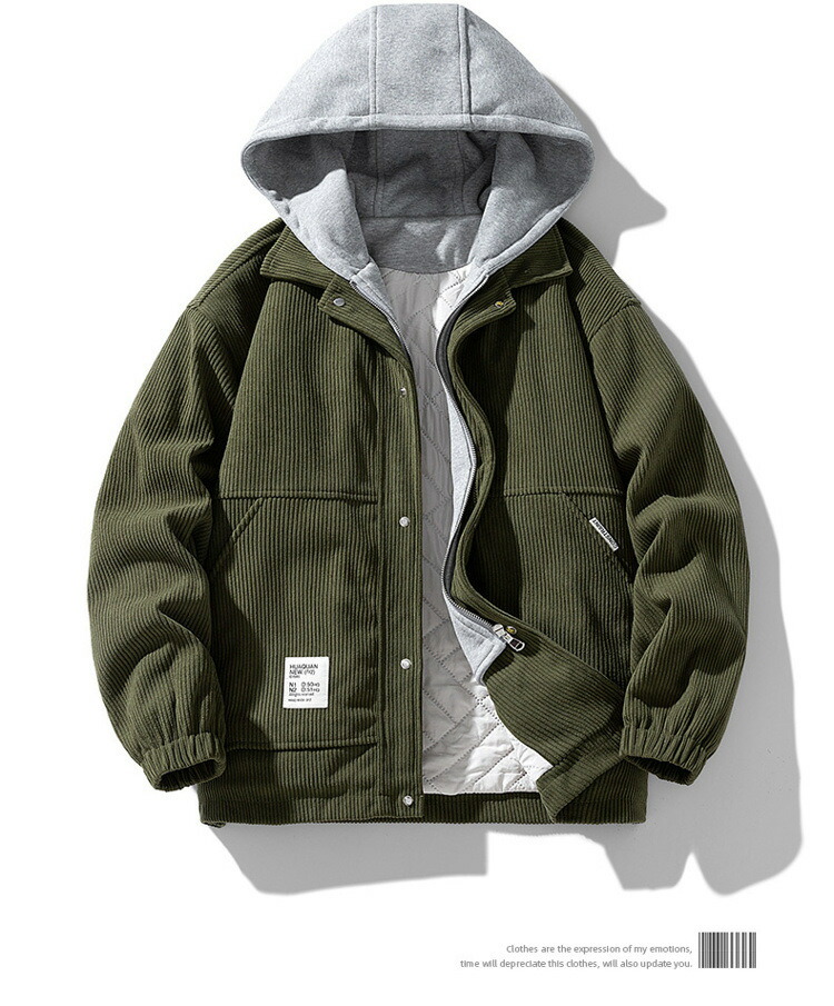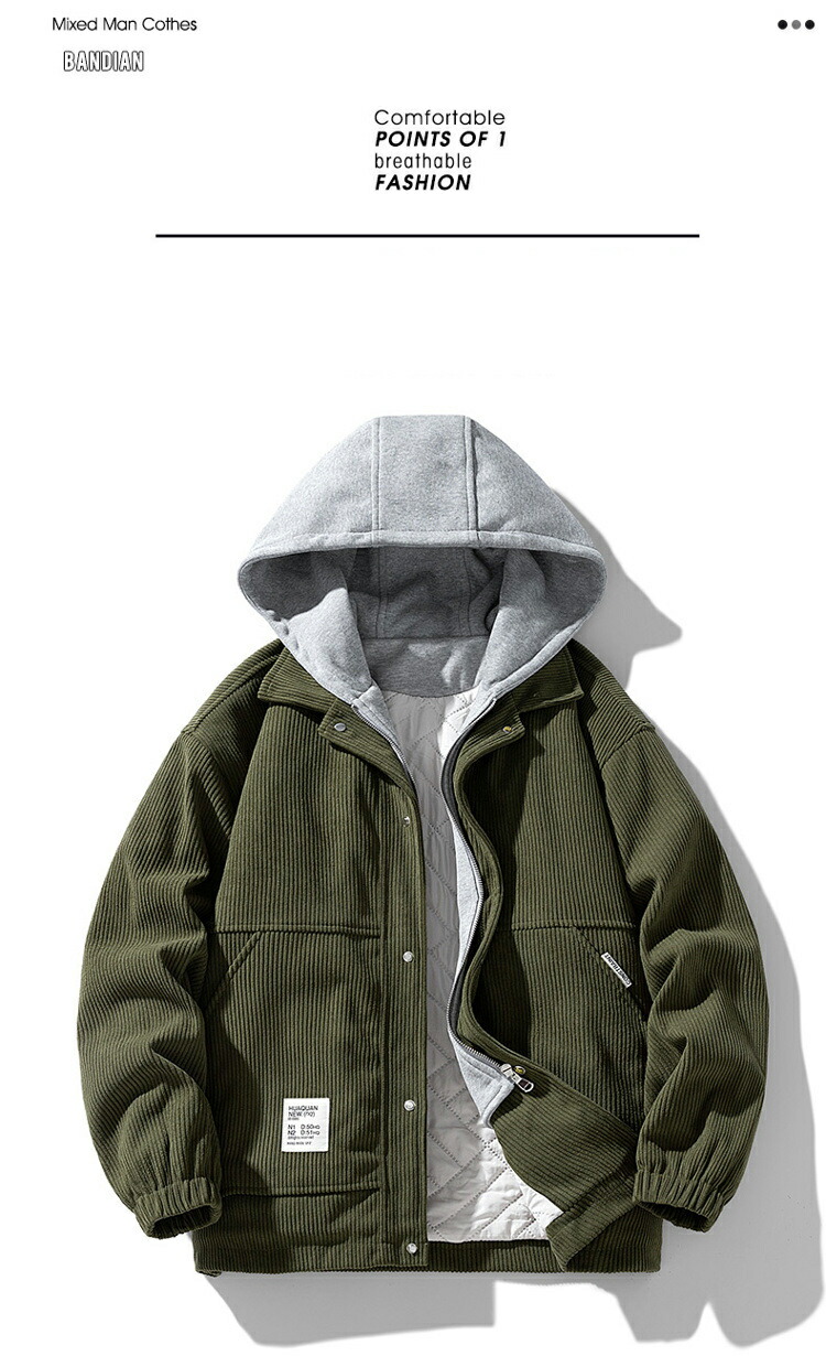 コーデュロイコート フード付き メンズ コート ジャケット 新作 黒 緑 コーヒー ベージュ M L XL 2XL 3XL