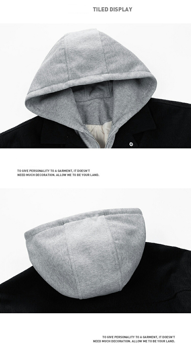 コーデュロイコート フード付き メンズ ジャケット フェイクレイヤード 中綿入り 暖かい 防風 アウター カジュアル 中綿コート 厚手 ショート丈 トップス ミリタリージャケット スポーツ アウトドア