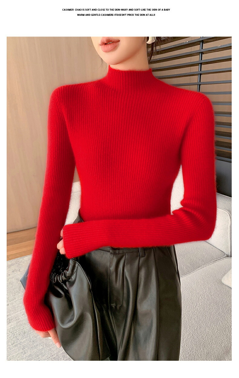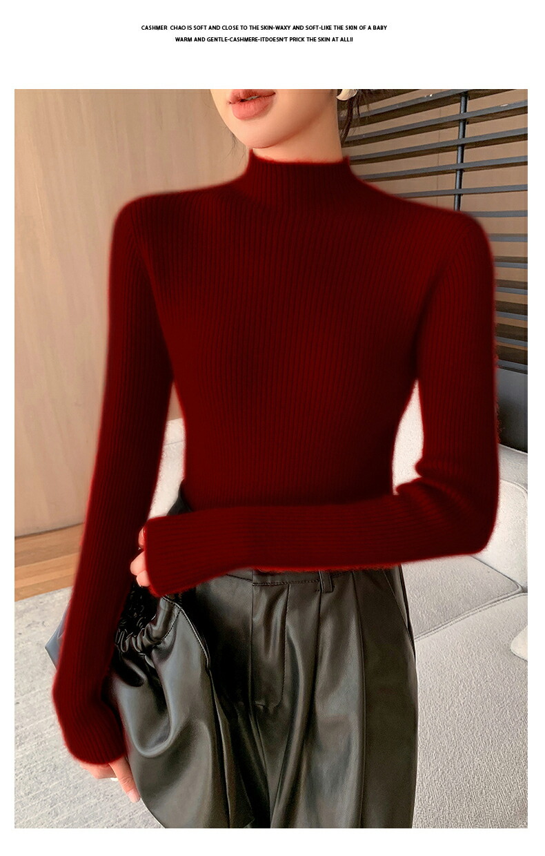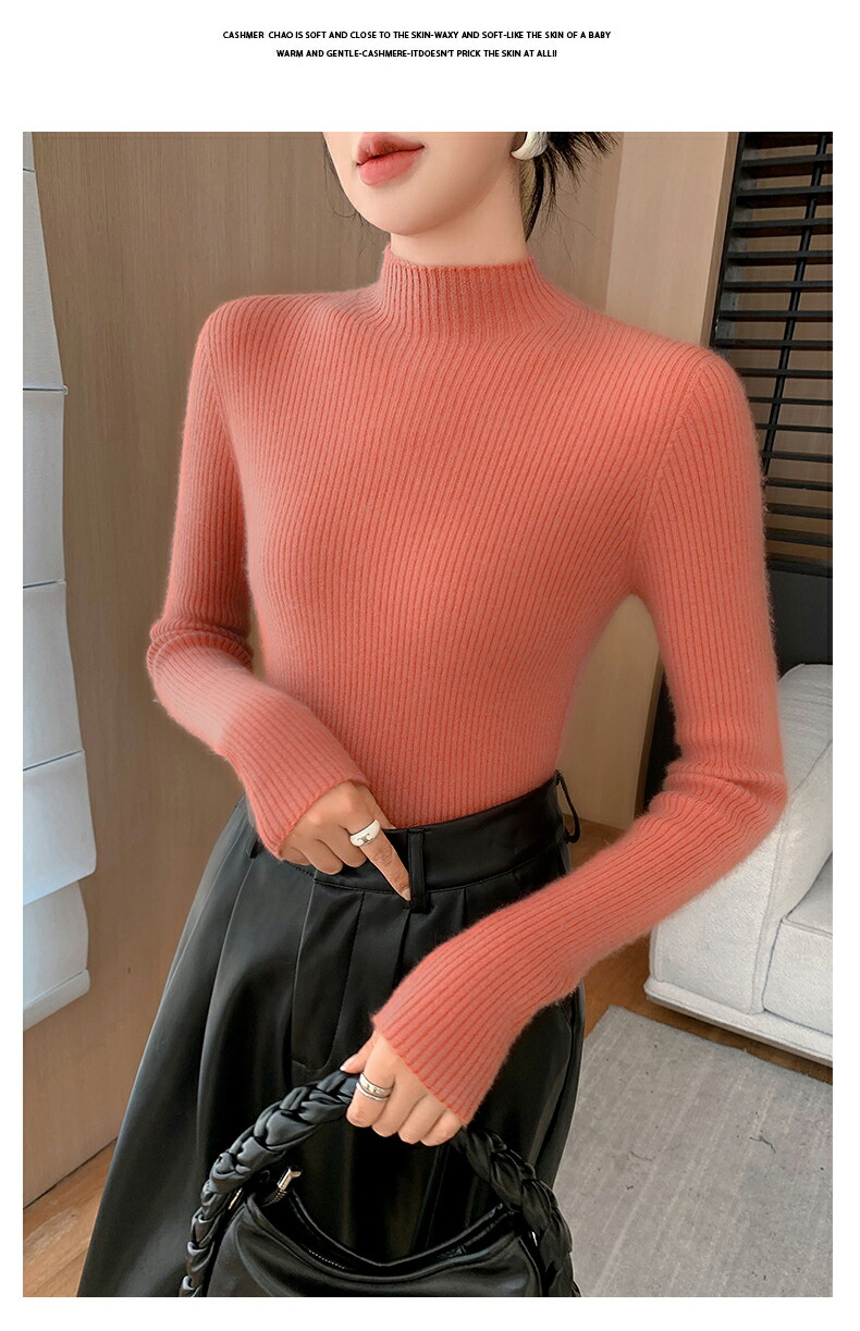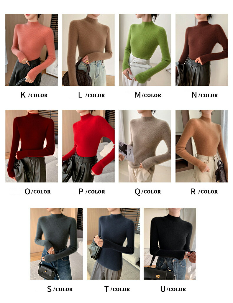 ニットセーター レディース カシミア ハーフネック 無地 秋冬 あったか 細身 プルオーバー おしゃれ 長袖ニット ニットソー インナーニット 羽織り 柔らかい スリム 通勤 OL オフィス ブラウス