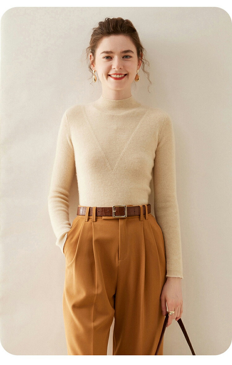 【送料無料】カシミアセーター ハーフハイネック 暖かい きれいめ オシャレ インナー 重ね着 もちもち ウォッシャブル 実用的 30代 40代 50代 全7色 S M L XL 2XL