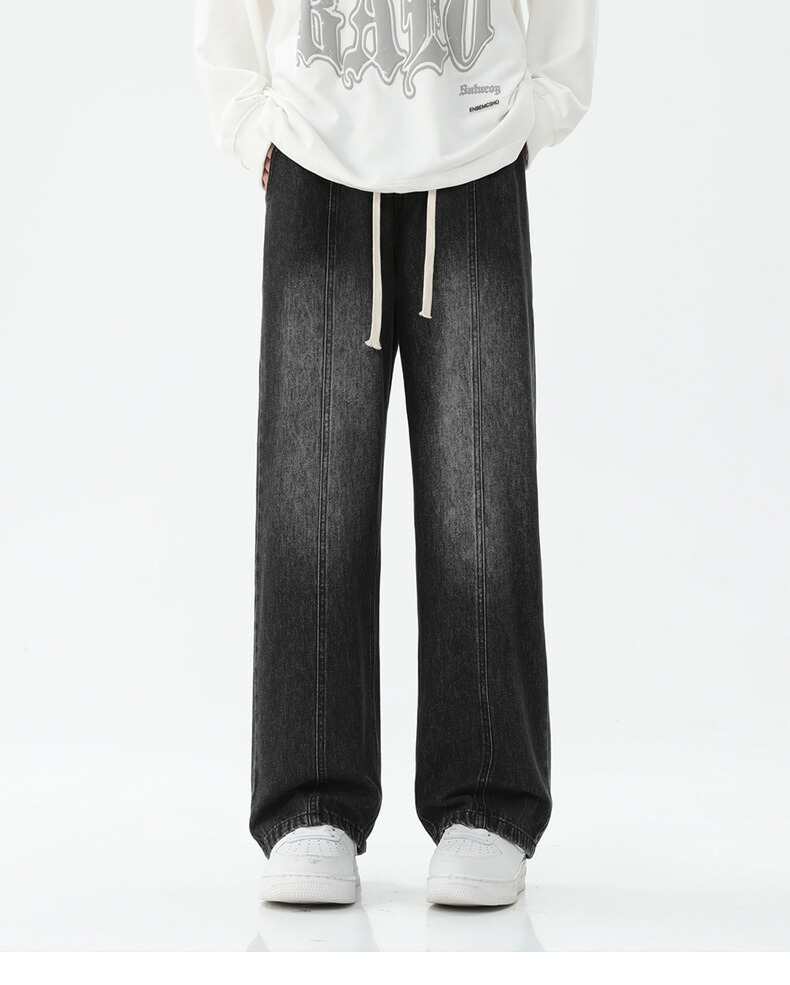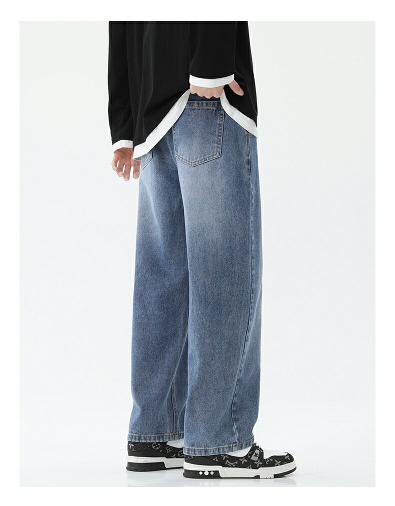 【送料無料】ワイドパンツ カジュアル ジーパン シンプル ミリタリー ワークパンツ ヒップホップ インディゴ ウォッシュ加工 無地 通学 男の子 ブラック グレー ブルー S M L XL 2XL 3XL