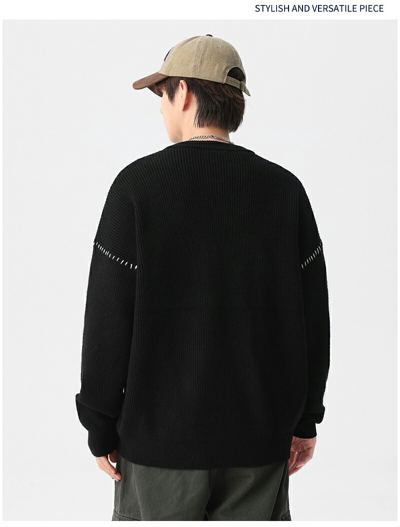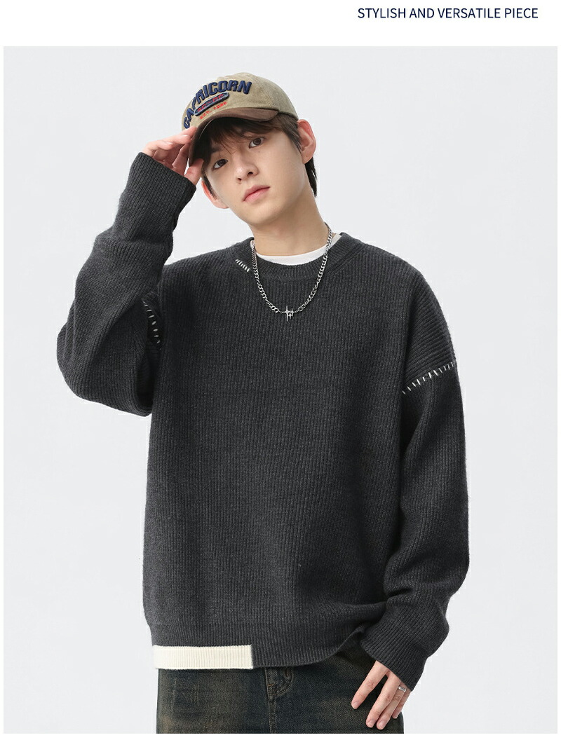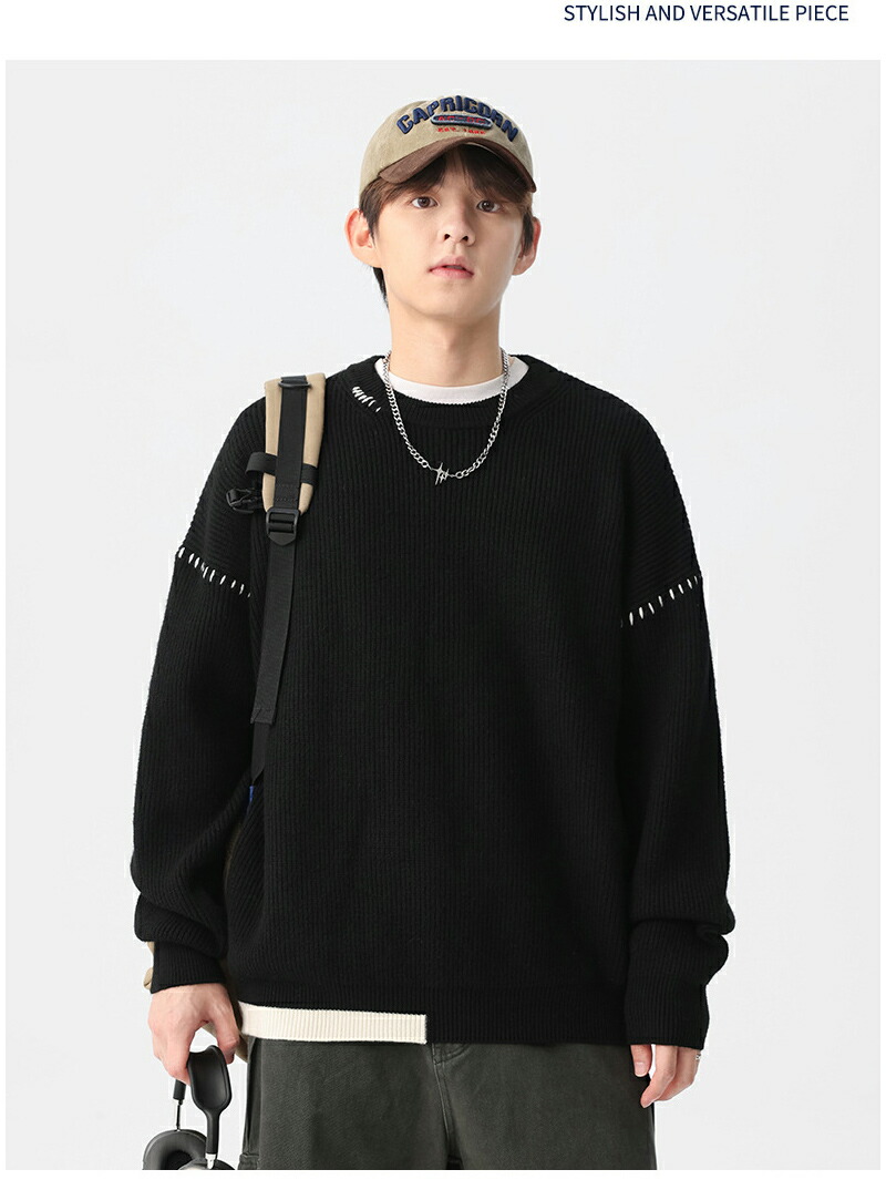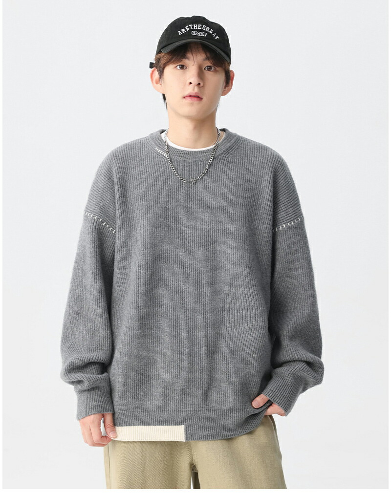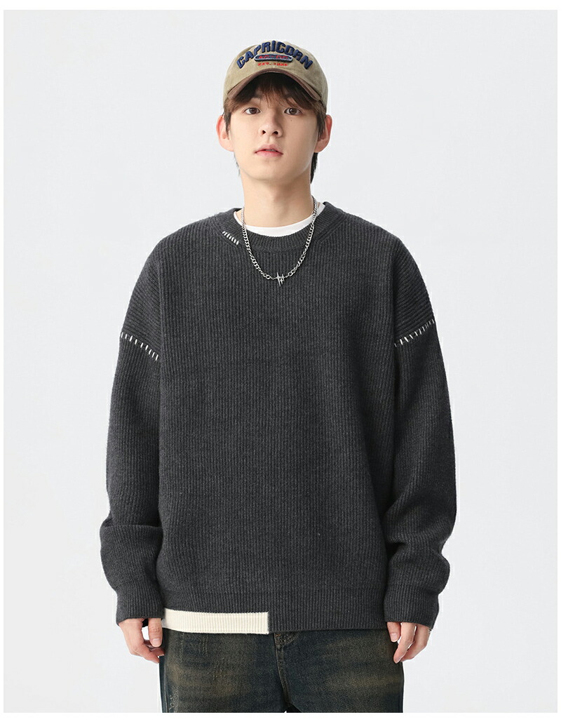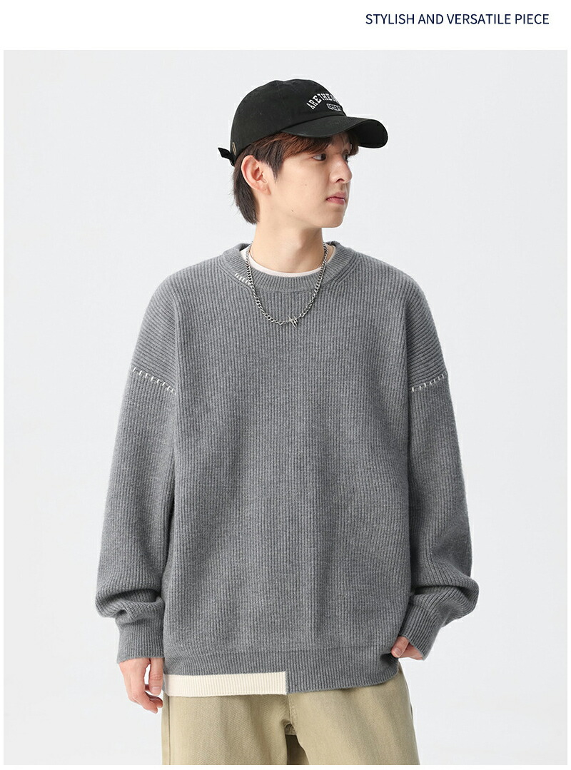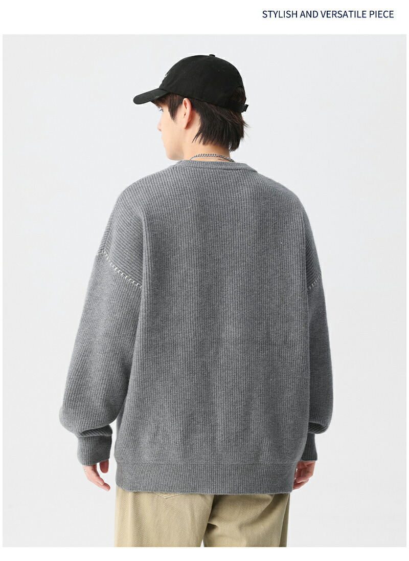 【送料無料】カジュアル メンズニット あったか 丸首 BIGシルエット 体型カバー Sweater 無地 ビッグシルエット 20代 30代 40代 ブラック グレー M L XL 2XL 3XL