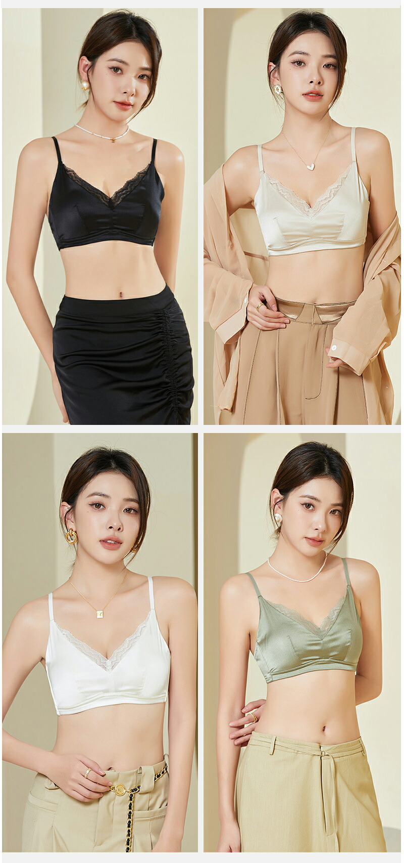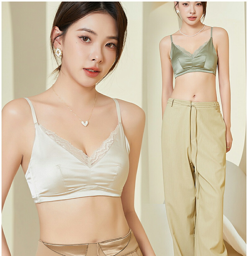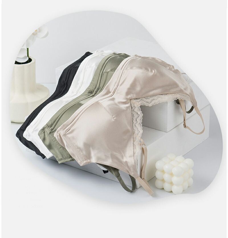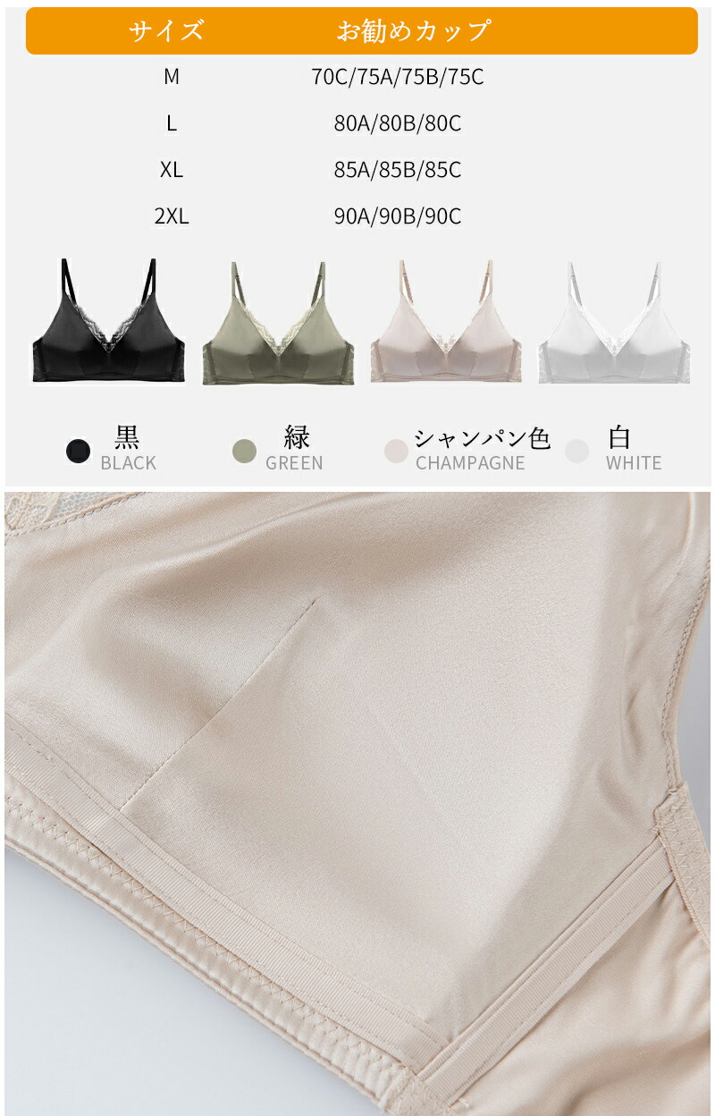 ブラジャー シルク ノンワイヤー レー レディース インナー 下着 ブラジャー 特集 黒 緑 シャンペン 白 M L XL 2XL