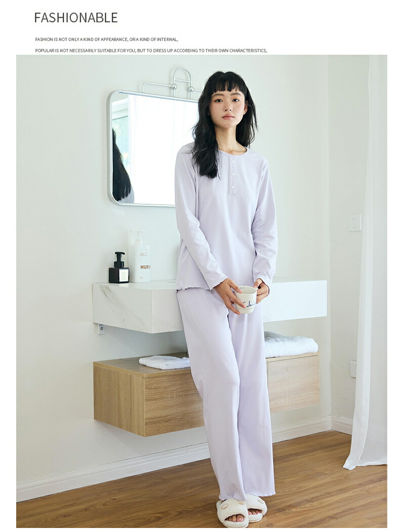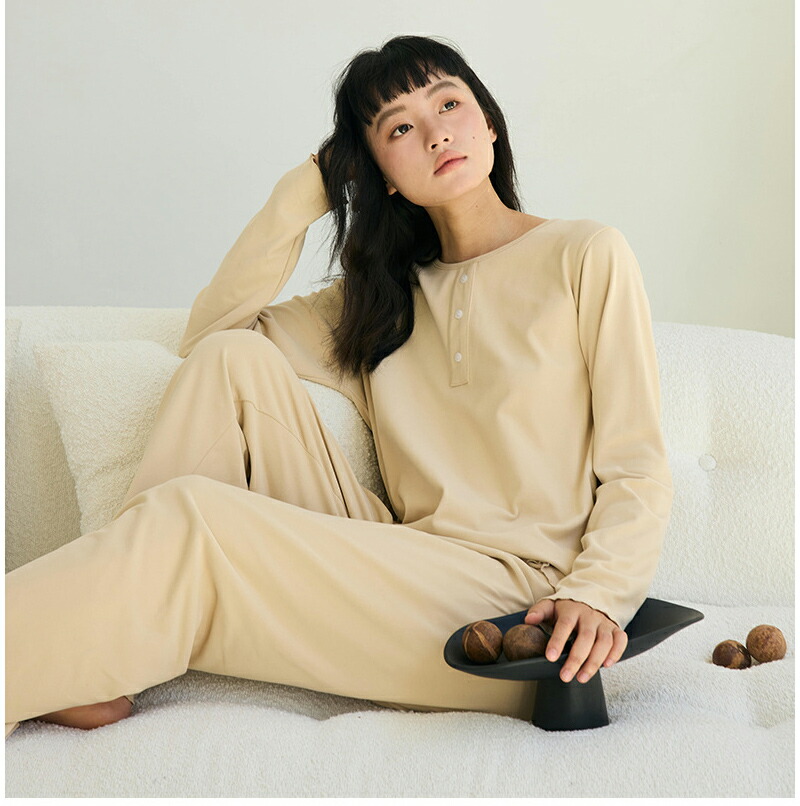 【送料無料】パジャマ プルオーバー カップ付 tシャツ 長袖 長ズボン 保温 ゆったり トレーナー 丸首 大きいサイズ 動きやすい 洗える かわいい ベージュ カーキ ブルー パープル M L