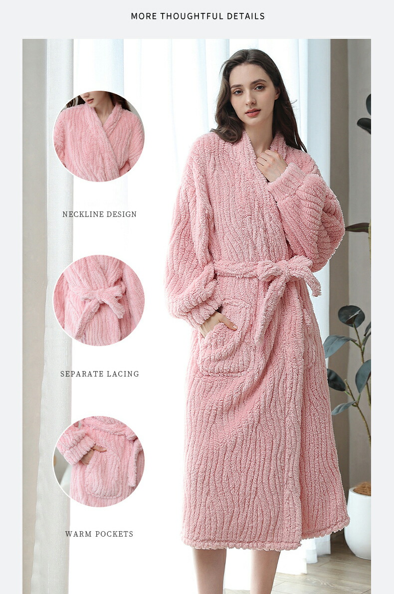 バスローブ ふわふわ 長袖 ナイトガウン レディース ロング 冬 厚手 ガウン パジャマ あったか ナイトウェア おしゃれ バスタオル 大きいサイズ 部屋着 可愛い 寝巻き 防寒 カジュアル 女性 婦