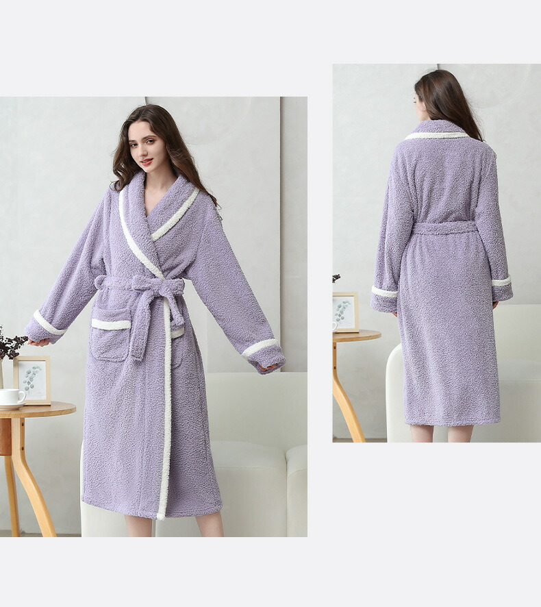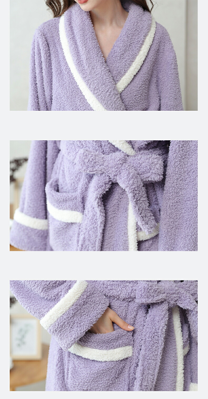 【送料無料】ルームウェア ベルベット 暖かい モコモコ お風呂上り 前開き 保温 ゆったり 着る毛布 秋冬 クリスマス 贈り物 グレー パープル ベージュ M L XL
