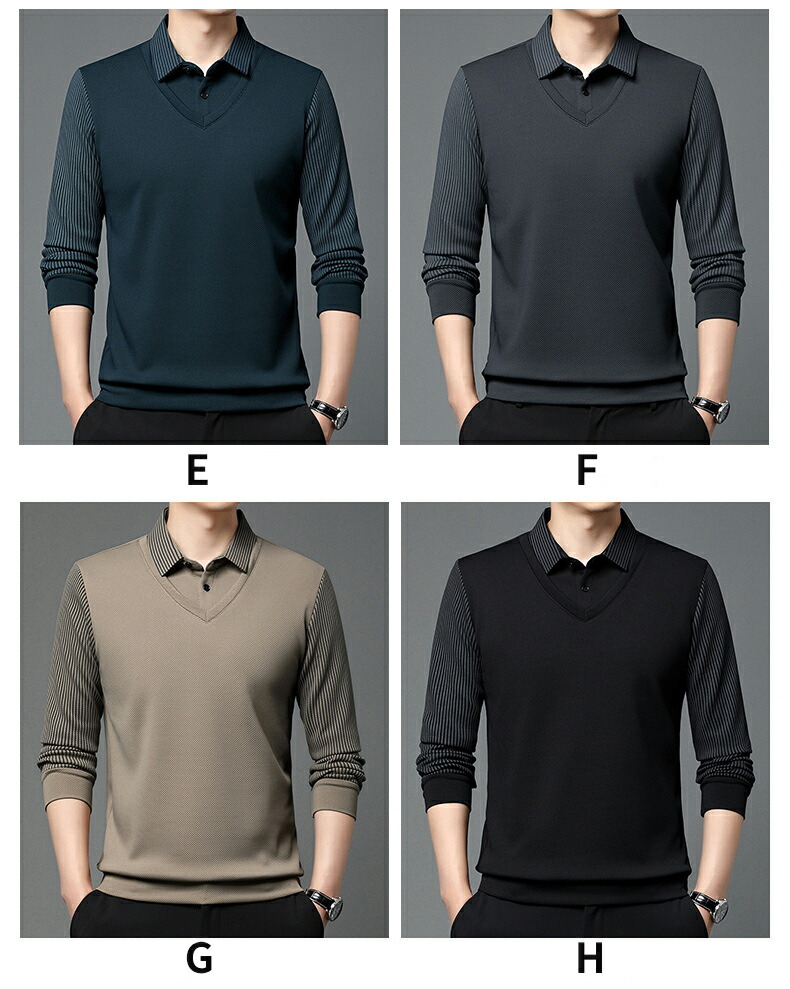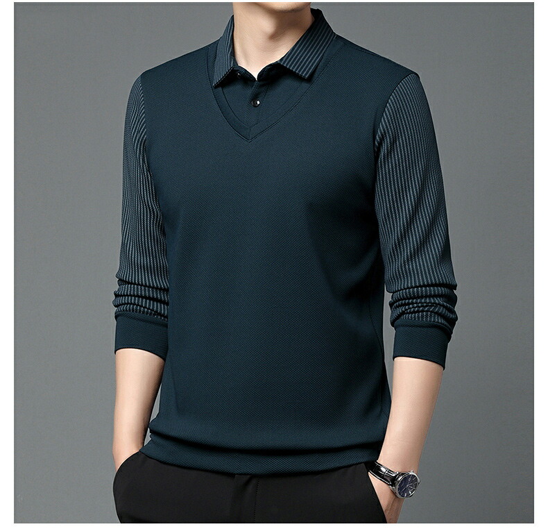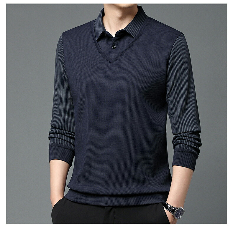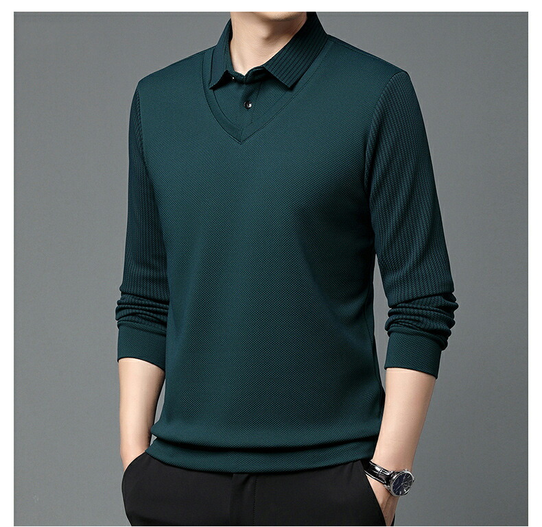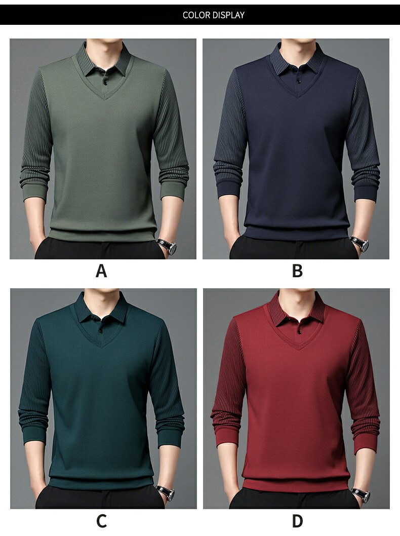 【送料無料】フェイクシャツ 暖かい Vネック カットソー シンプル 長袖シャツ おしゃれ インナーシャツ 保温 防寒 インナーウエア 全8色 M L XL 2XL 3XL 4XL