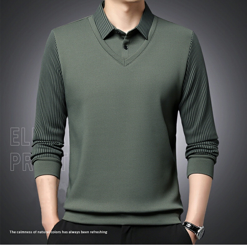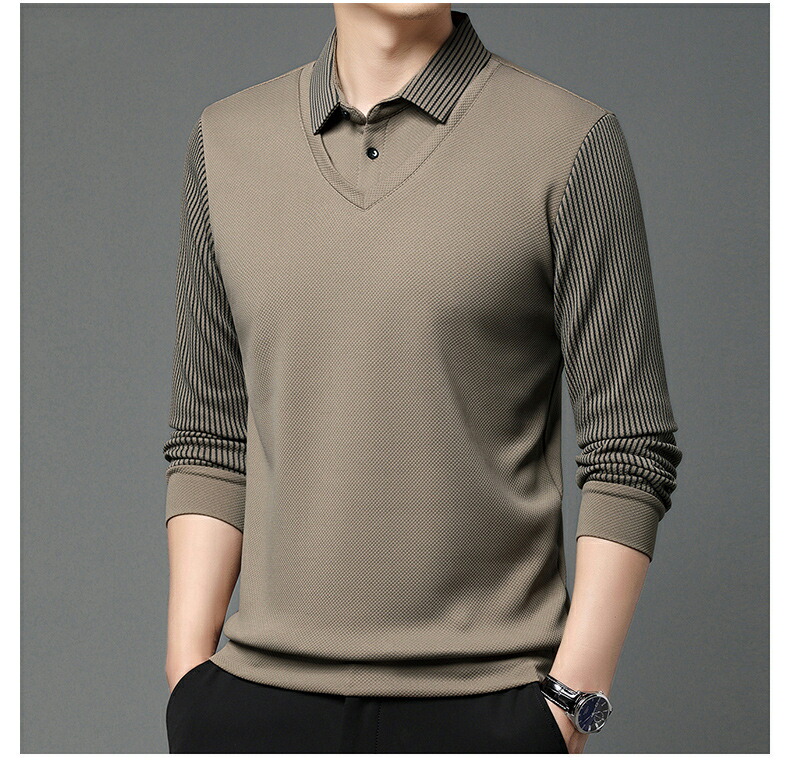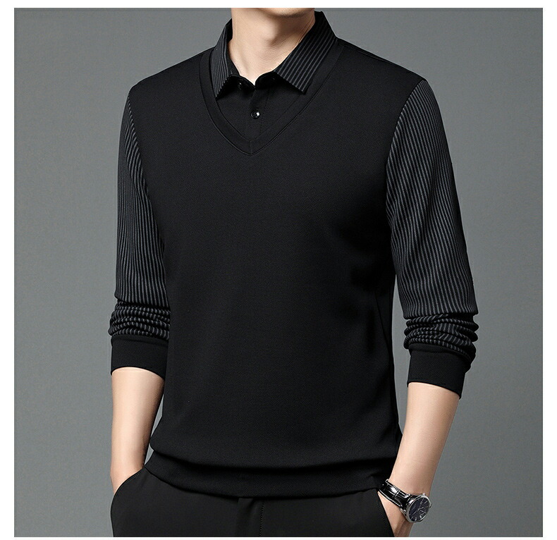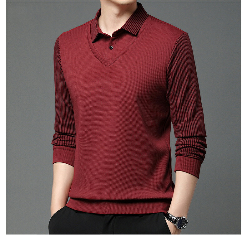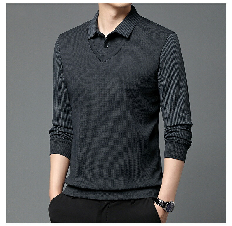 【送料無料】フェイクシャツ 暖かい Vネック カットソー シンプル 長袖シャツ おしゃれ インナーシャツ 保温 防寒 インナーウエア 全8色 M L XL 2XL 3XL 4XL