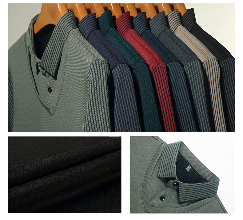 メンズ フェイクレイヤード シャツ 長袖 襟付き メンズシャツ 裏起毛 あったか 秋冬 大きいサイズ ボタンダウン プルオーバー ポロシャツ ビジネス 重ね着 トップス 仕事着 シニア 父の日 敬老の