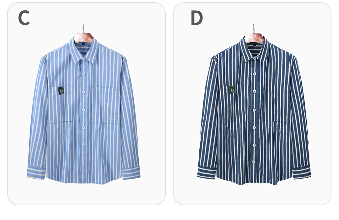 メンズ シャツ 長袖 ストライプ 綿1 トップス カジュアルシャツ お買い得 A B C D M L XL 2XL 3XL 4XL