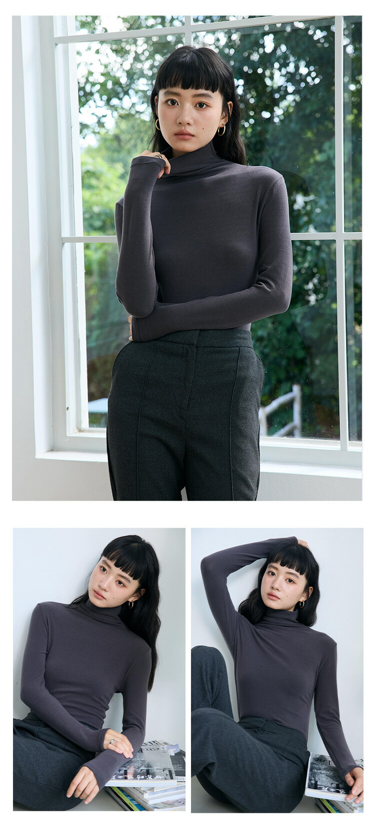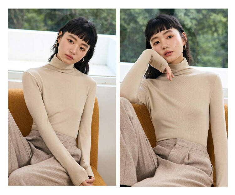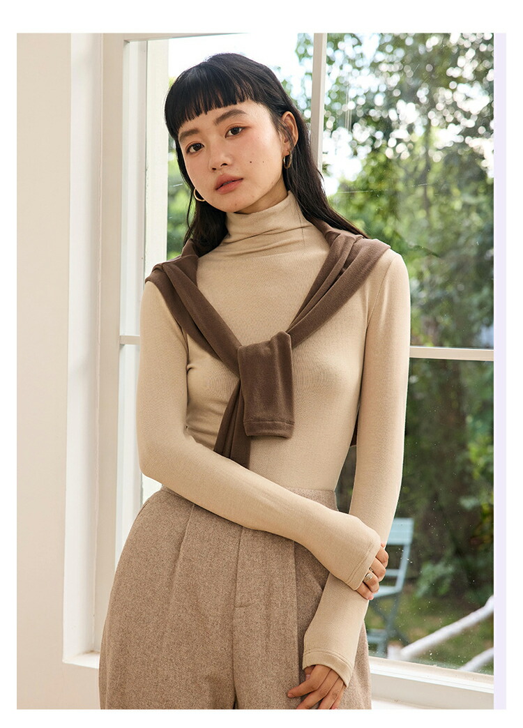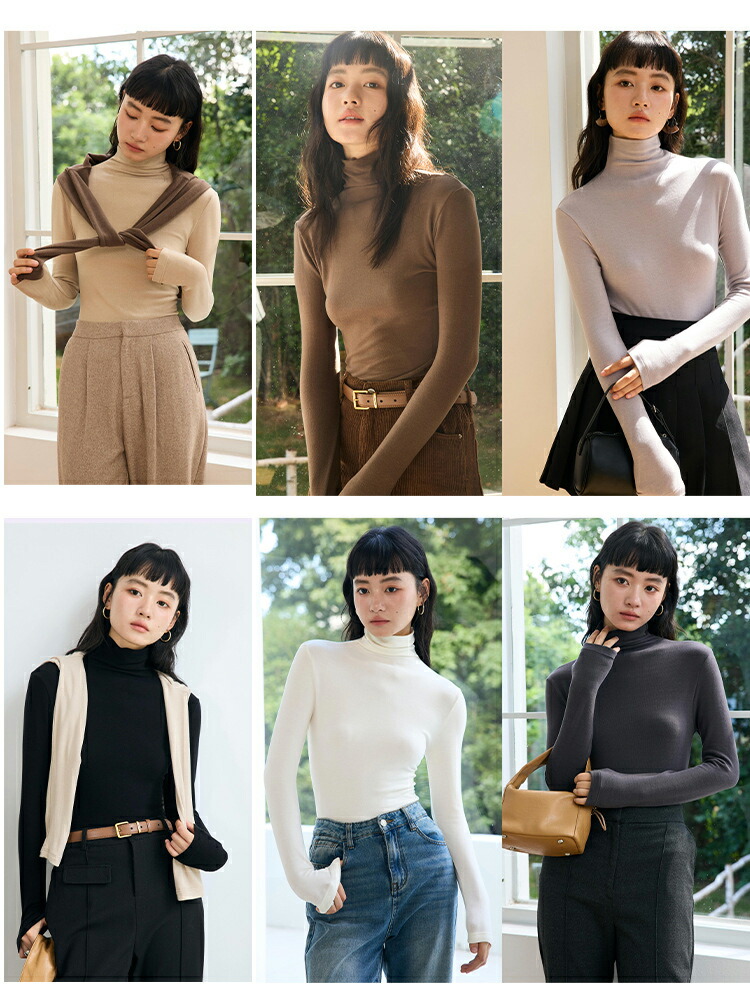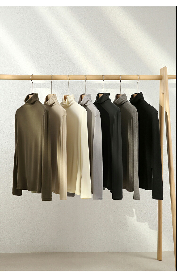 【送料無料】インナーウェア 暖かい タートルネック おしゃれ 長袖インナー プルオーバー 防寒 汗取り ロンT かわいい 無地 きれいめ 秋冬春 全7色 M L