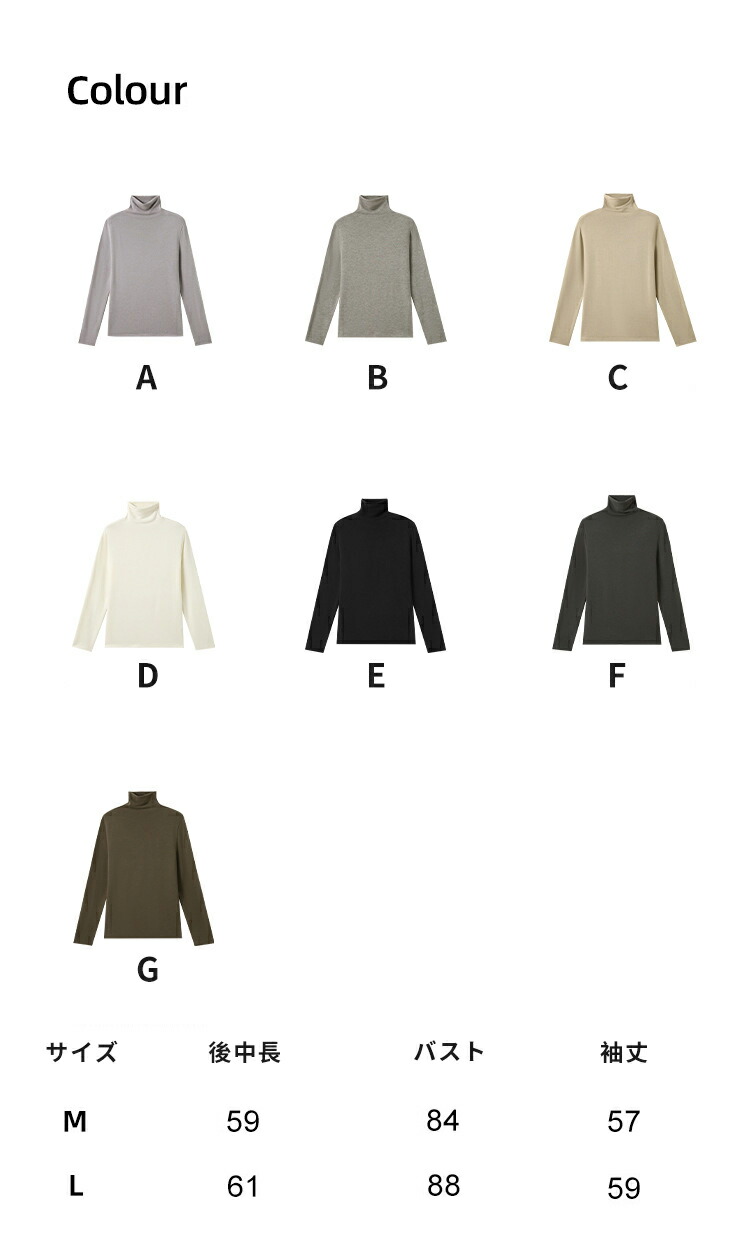 レディース 長袖Tシャツ ハイネック レディースファッション 人気 A B C D E F G M L