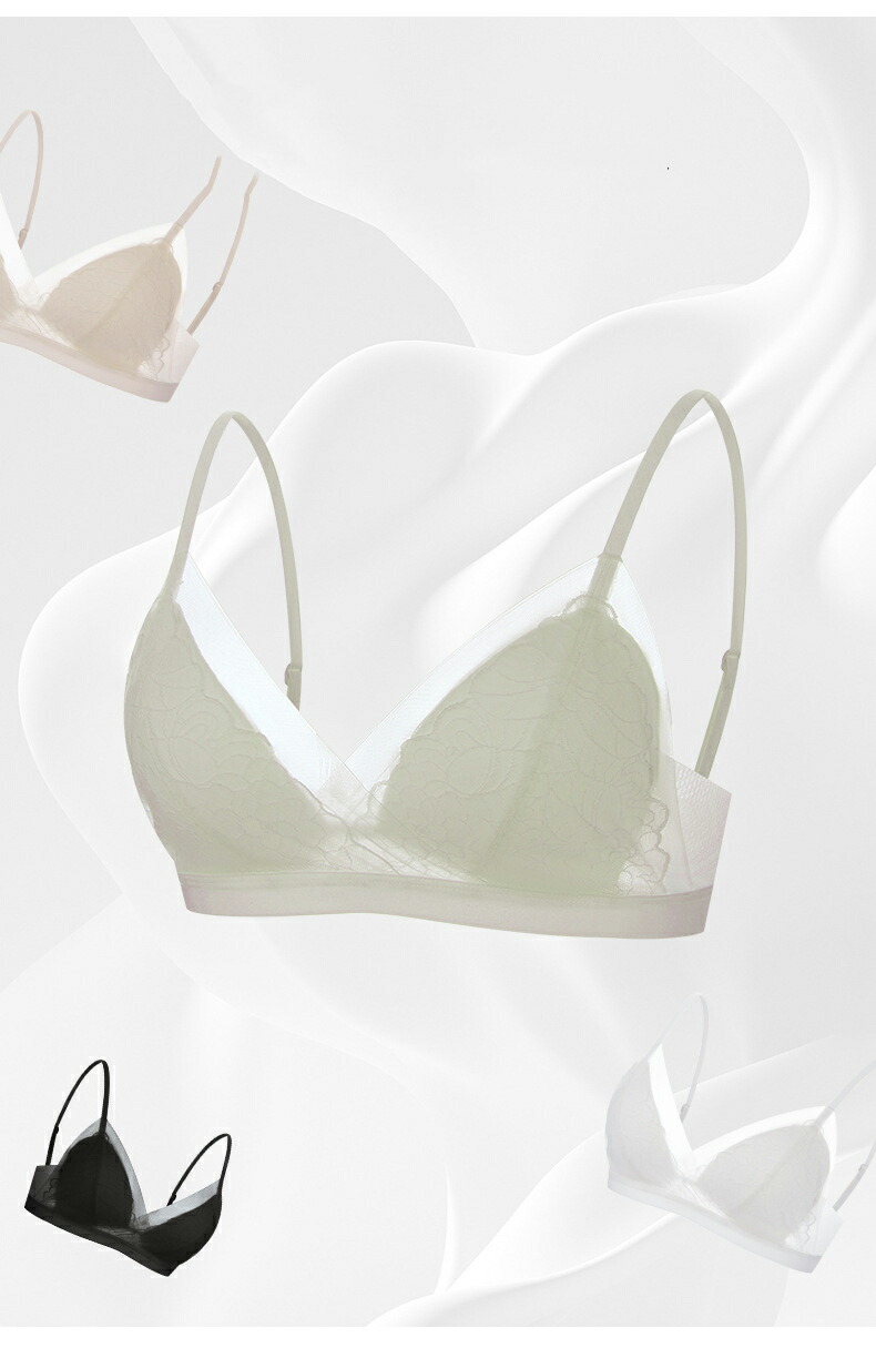 【送料無料】三角ブラ ノンワイヤーブラ 総レース 吸湿速乾 快適 高い通気性 シームレス 楽ブラ 美肌 保湿 敏感肌 エレガント 無地 ブラック ホワイト グリーン 肌色 S M L XL