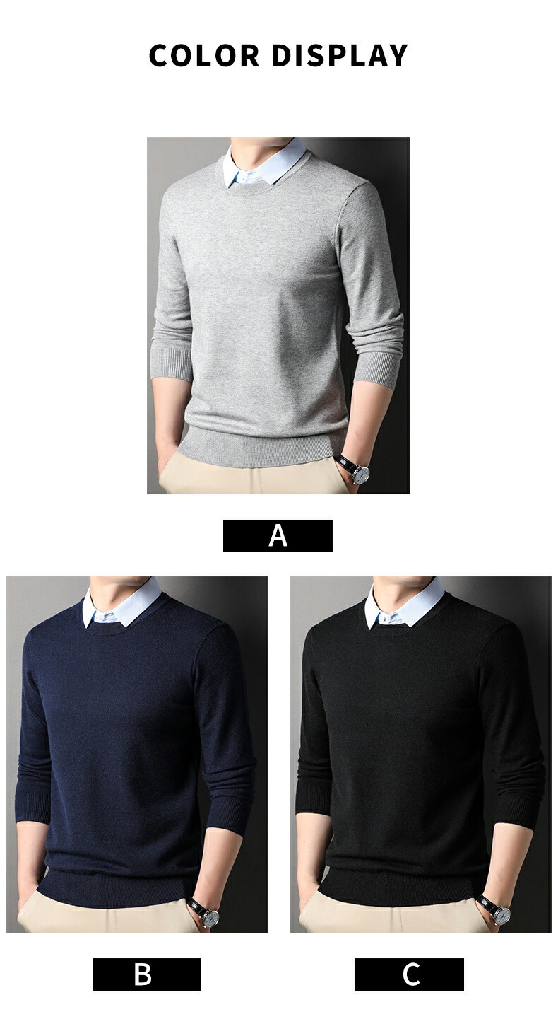 フェイクレイヤード セーター メンズ メンズファッション 豊富な品揃え Aグレー B紺 C黒 M L XL 2XL 3XL