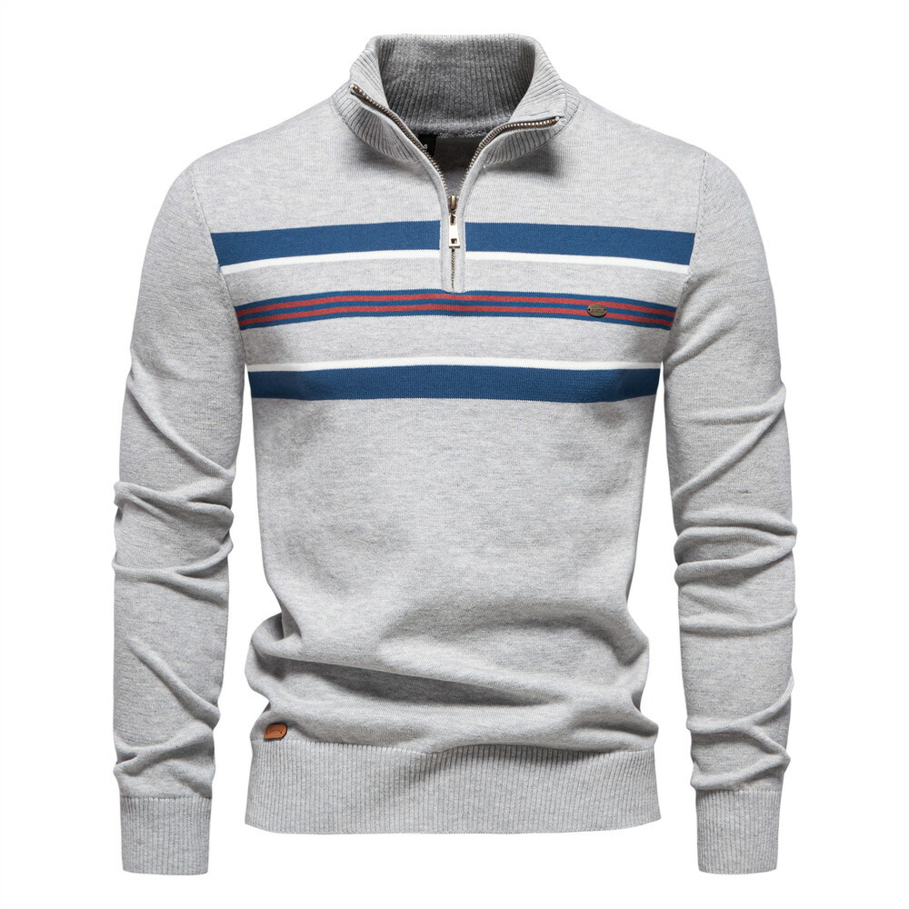 セーター メンズ ハーフジップ 秋冬 綿 プルオーバー あったか ビジネス 縞柄 大きいサイズ おしゃれ 立ち襟 ゆったり スウェット アメカジ ニットソー シンプル 通勤 ゴルフウェア トップス 春