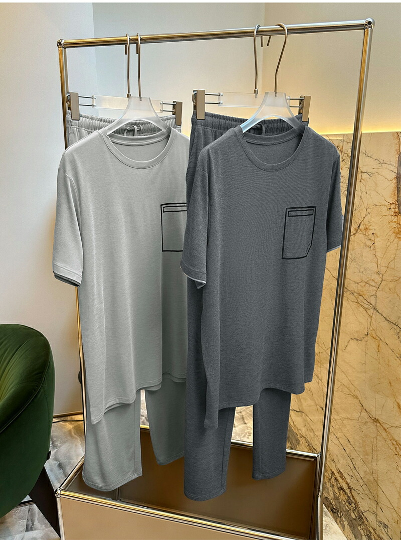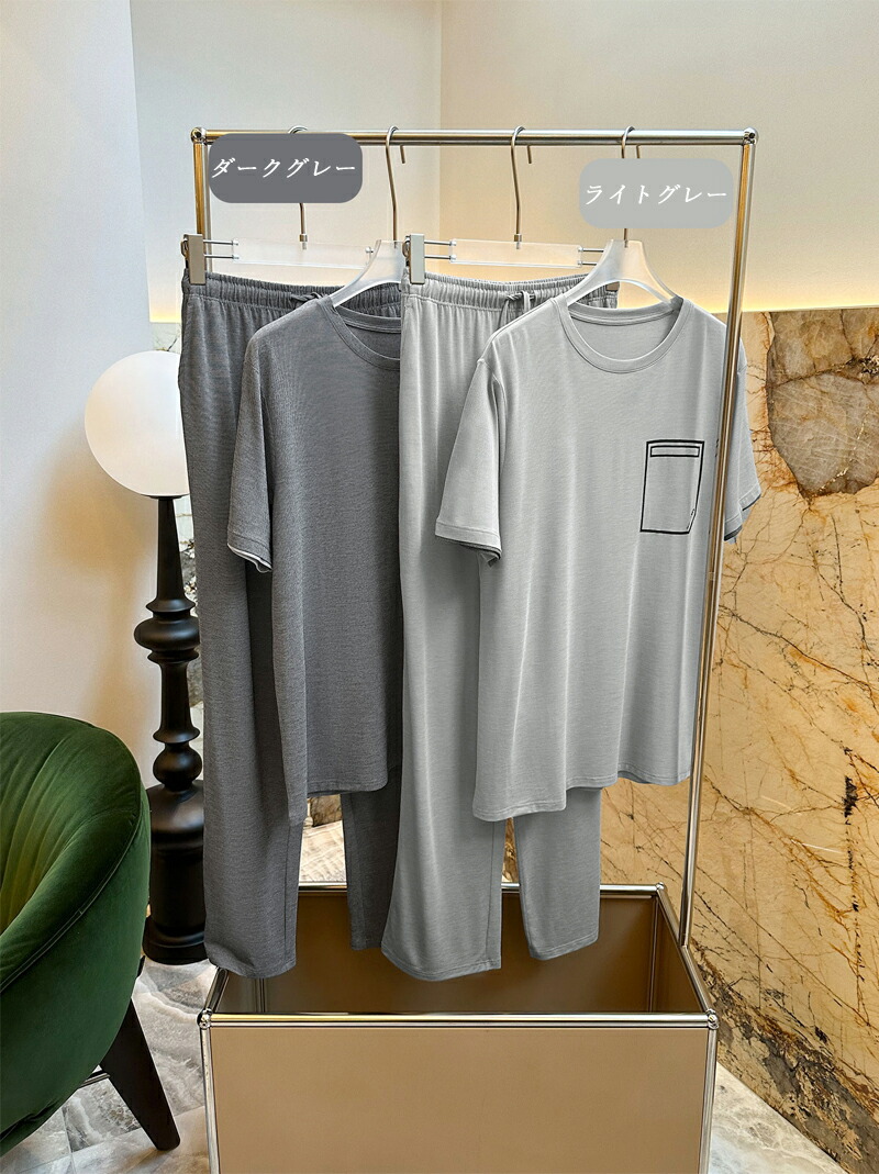 ルームウェア メンズ 上下 夏 半袖T インナー 下着 ナイトウエア 豊富 ライトグレー ダークグレー 175 180 185
